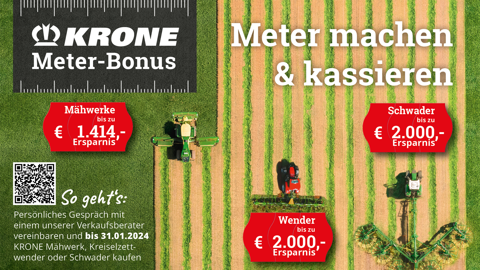 Wir können wieder tolle Maschinen-Aktionen von KRONE anbieten.