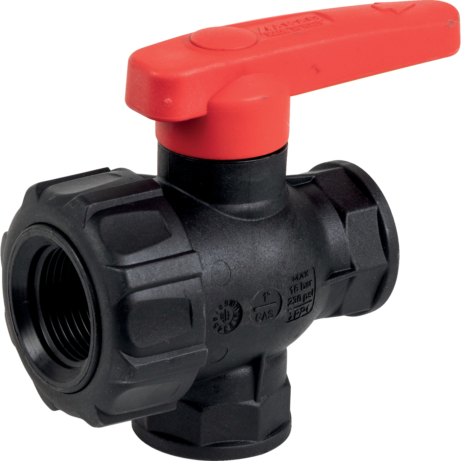 3-Wege-Kugelhahn Kunststoff, Innengewinde 1/2 Zoll