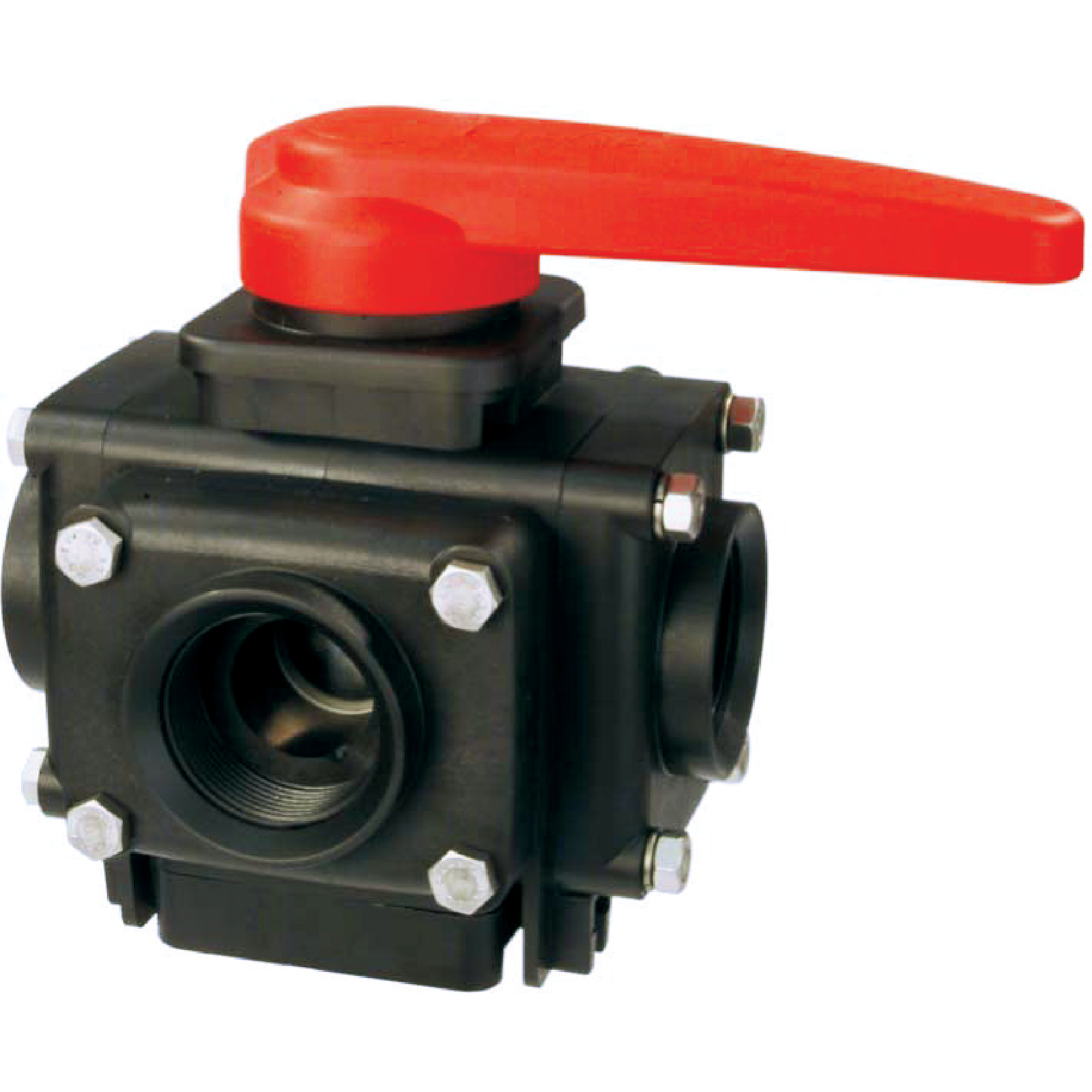 4-Wege-Kugelhahn Kunststoff, Innengewinde 1 1/4 Zoll