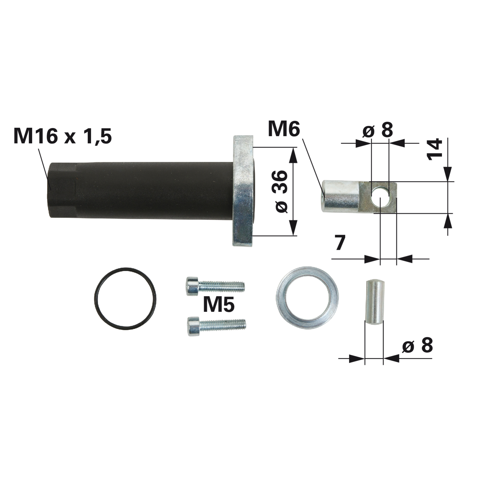 | Bezeichnung | Anschlussglocke LK 36 mm, ID 8 mm, M16 x 1,5 |