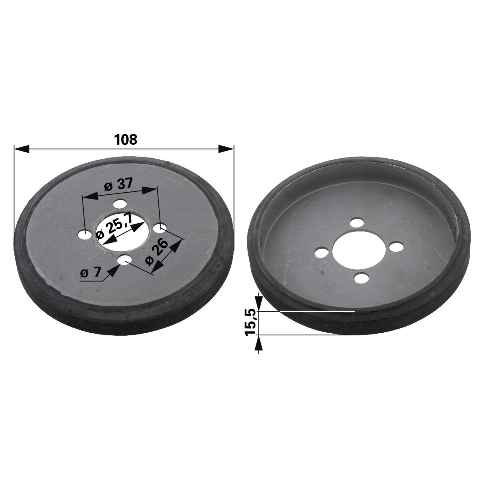 | Bezeichnung | Reibrad AD 108 mm anstelle von Toro 17226, 376570 |