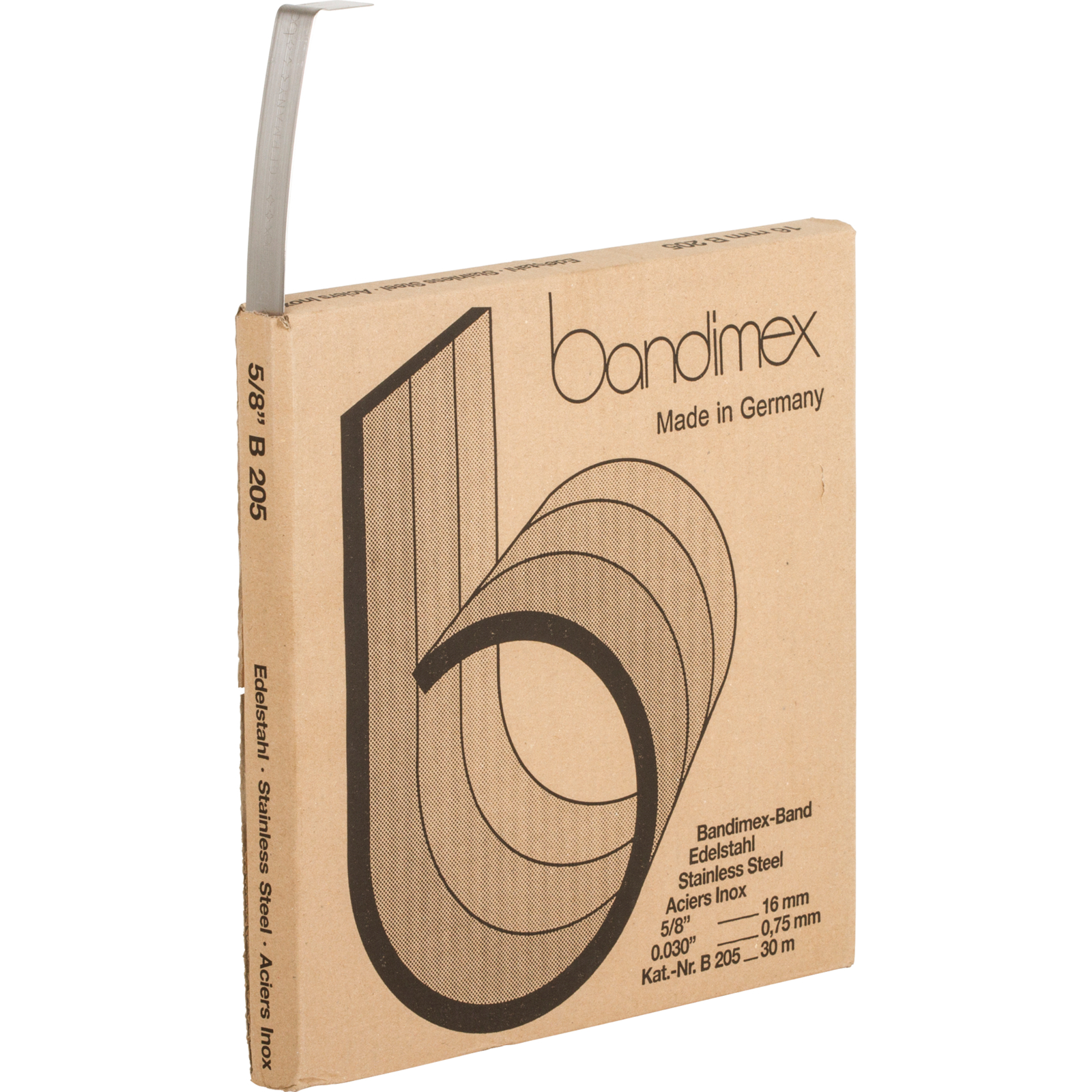 | Bezeichnung | Bandimex-Bandrolle Edelstahl, 30 m x 16 mm |