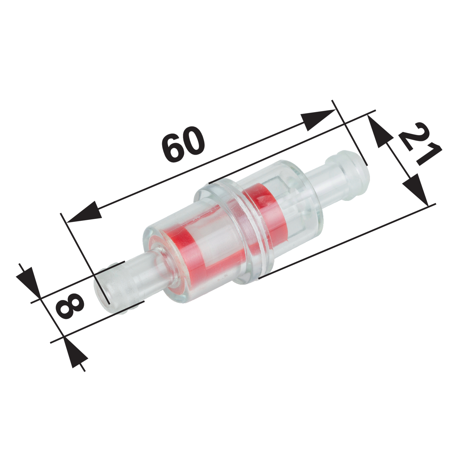 | Bezeichnung | Benzinfilter für Schlauch ID 8 mm, mit Nylon Element |