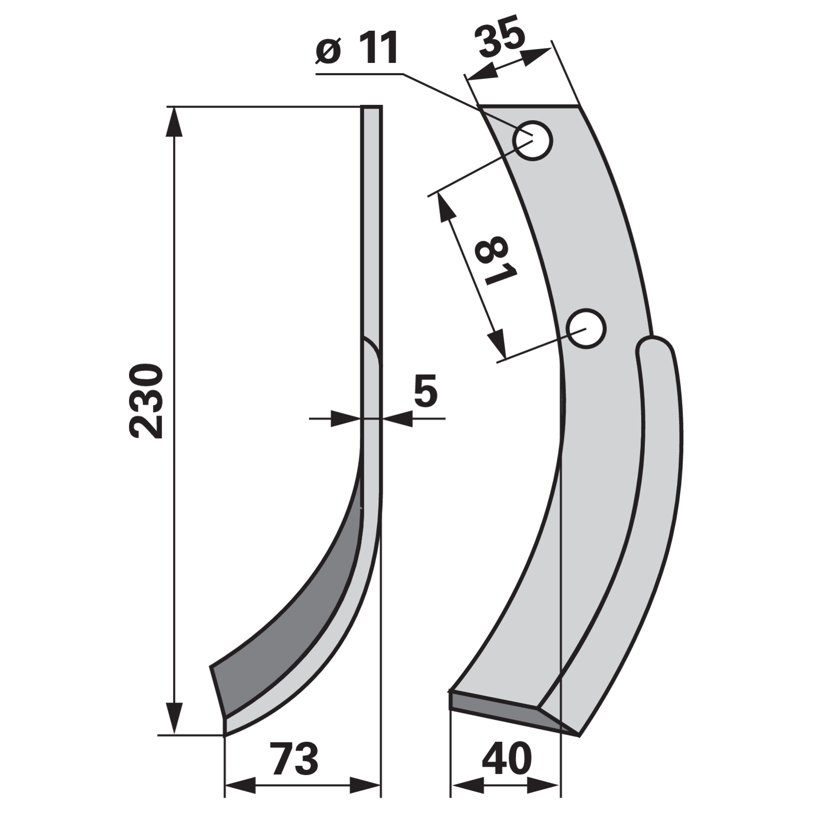 | Bezeichnung | Bogenmesser links 35x5 L = 230 Arbeitsbreite 73 LAB = 81 |