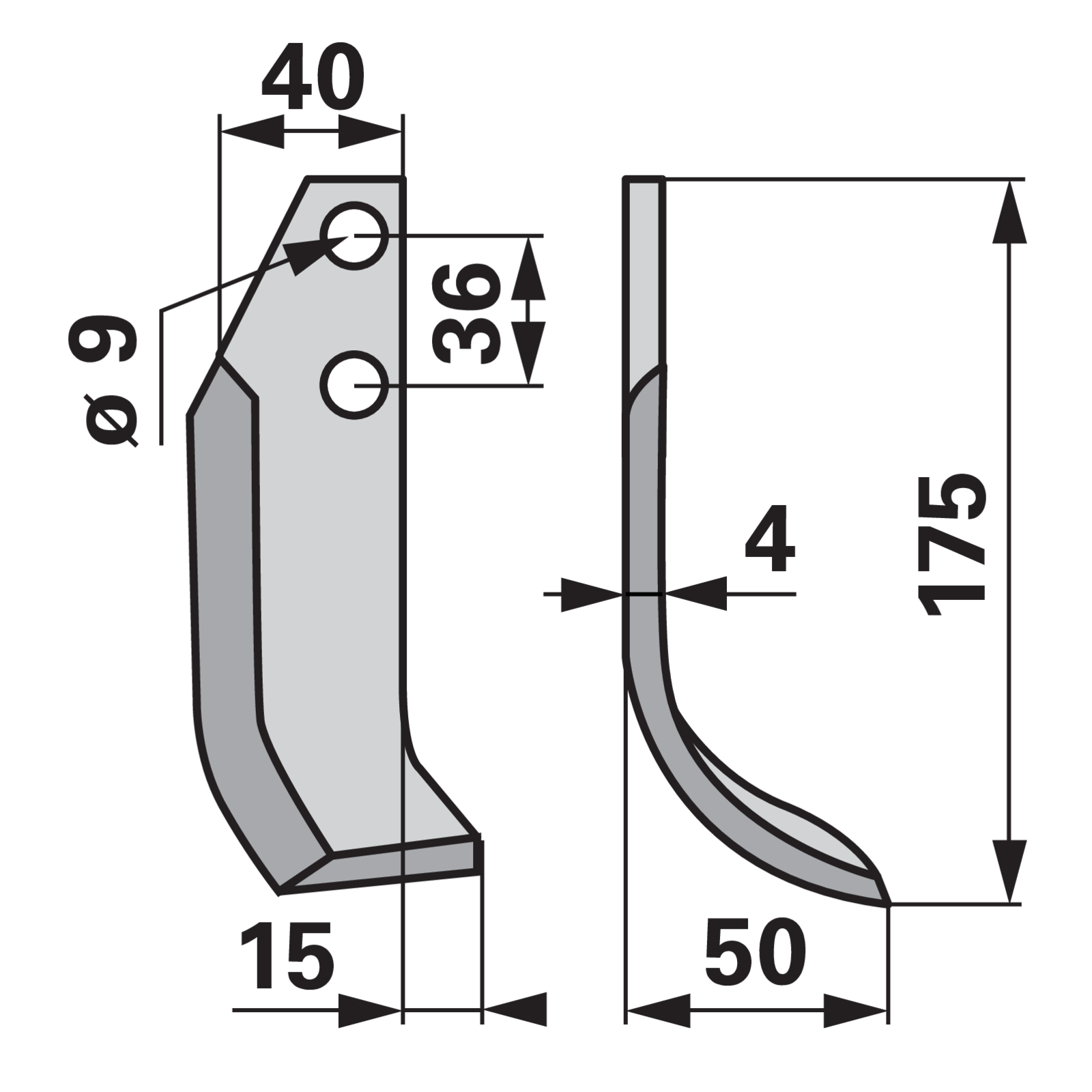 | Bezeichnung | Bogenmesser rechts 40x4 L = 175 Arbeitsbreite 50 LAB = 36 |