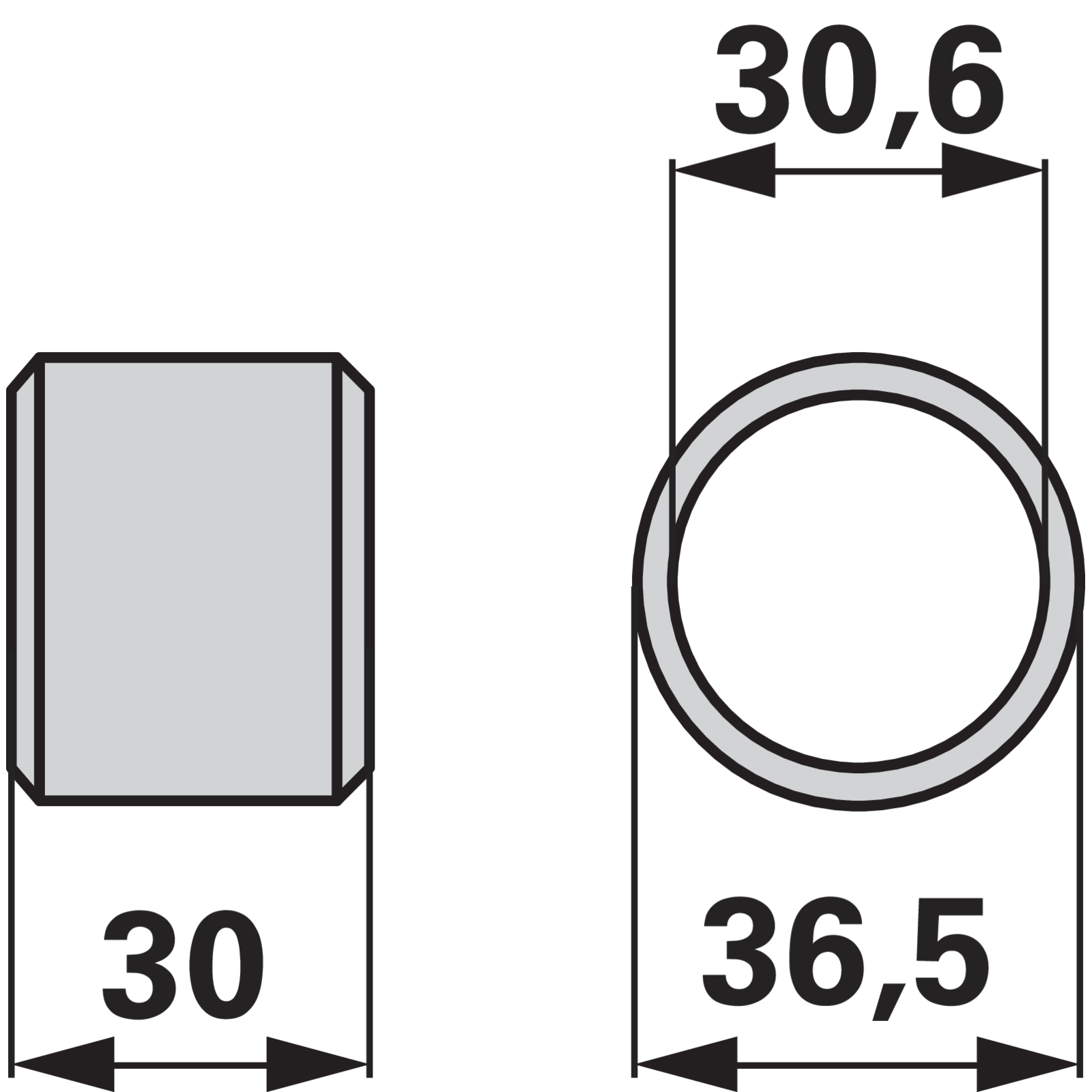 | Bezeichnung | Buchse AD 36,5 x ID 30,6 x L 30 mm anstelle von Mengele 04046741 |
