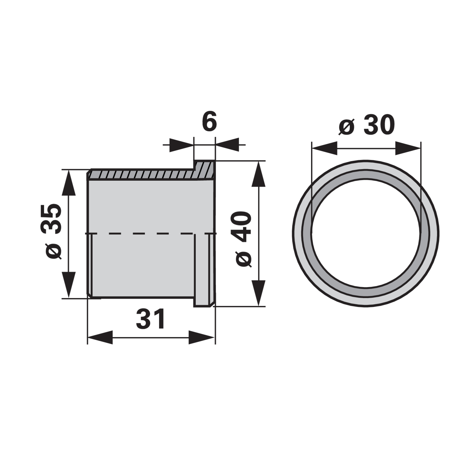 | Bezeichnung | Buchse AD 40 x ID 30 x L 31 mm anstelle von Reform 15801148 |