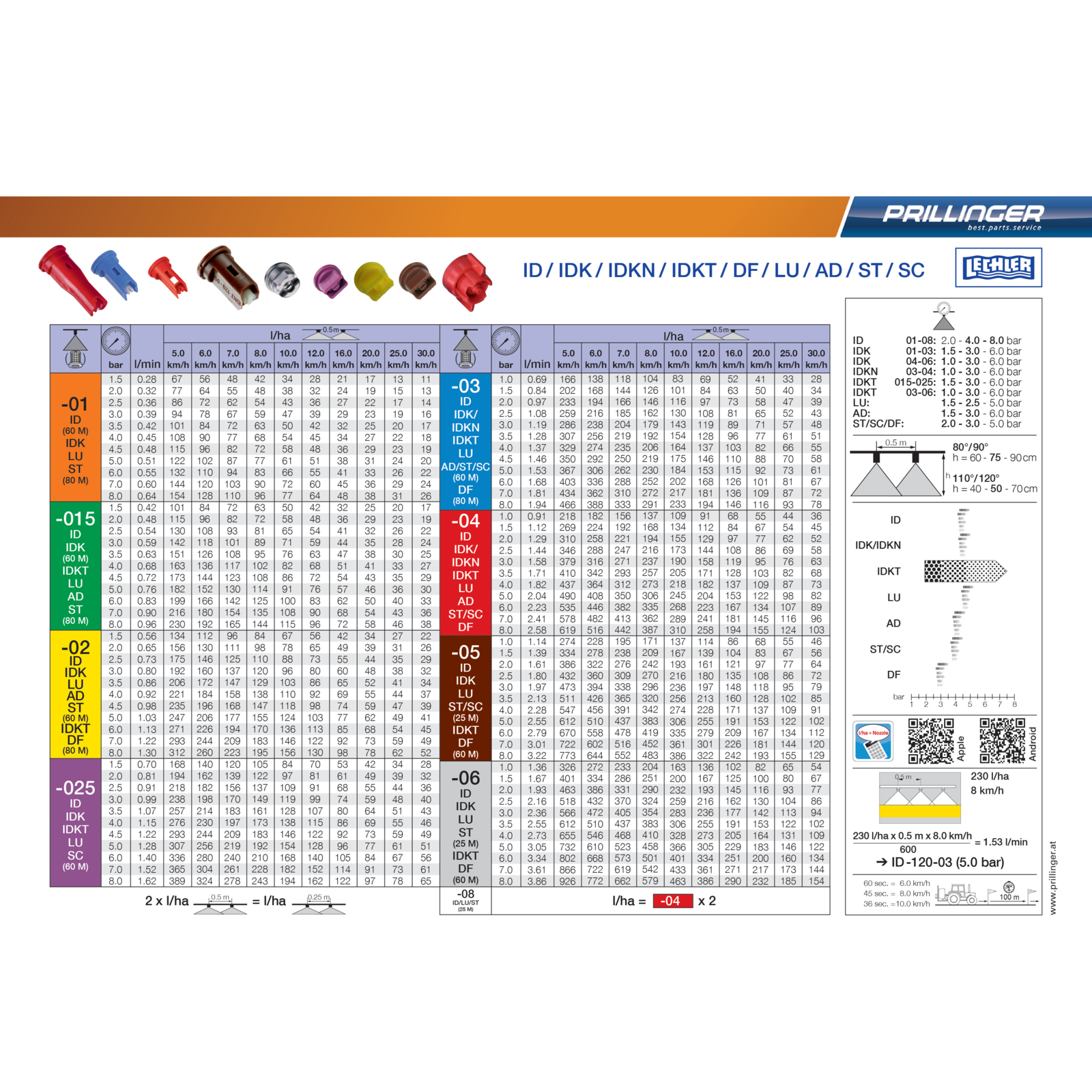 Düsentabelle Behälteraufkleber Prillinger - Lechler