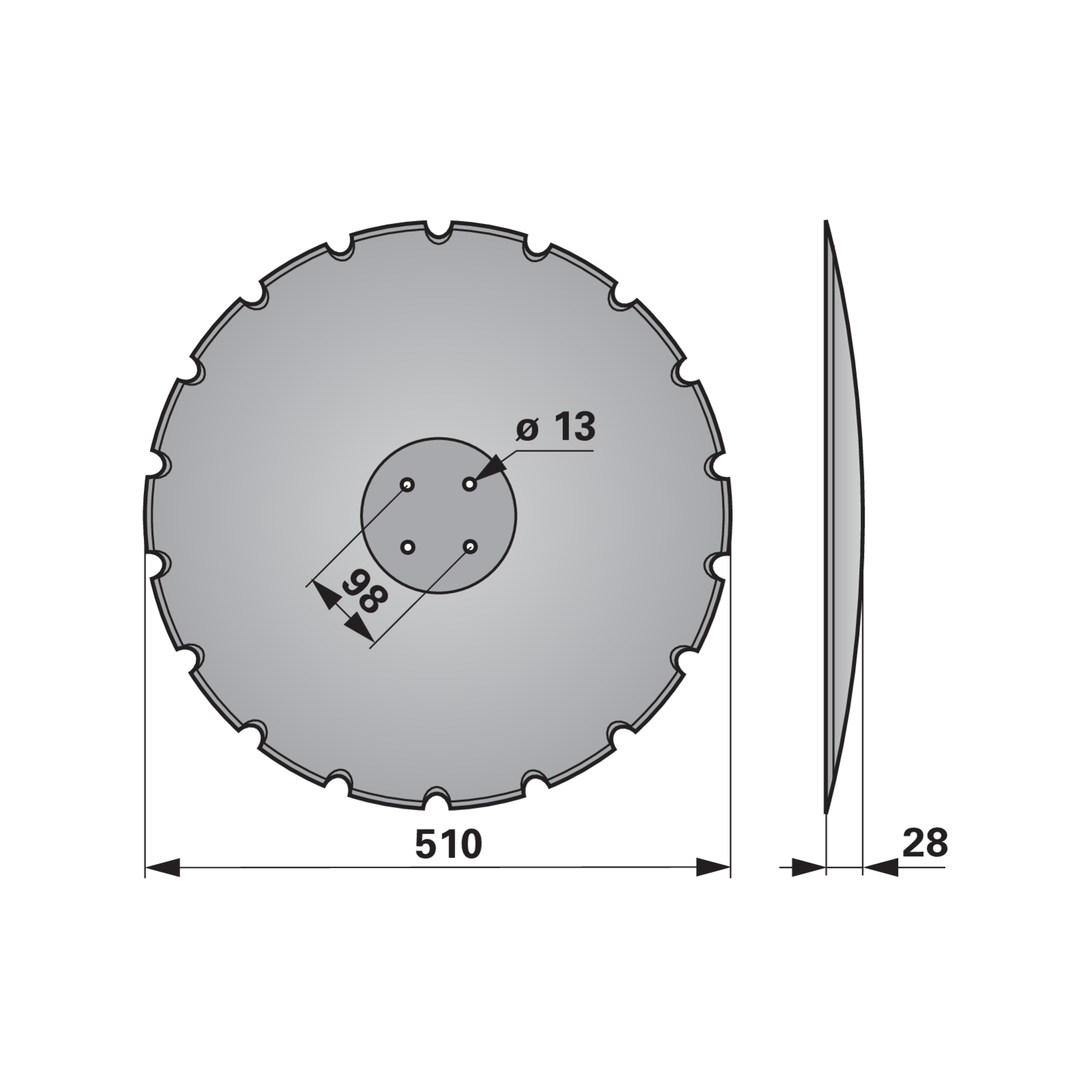 | Außendurchmesser (D) | 510 mm |