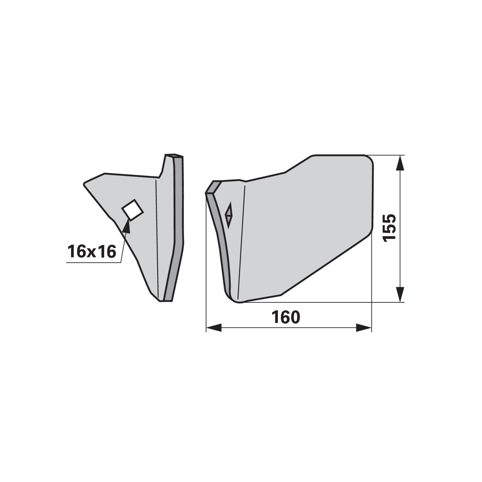 | Vierkantloch | 16 x 16 mm |