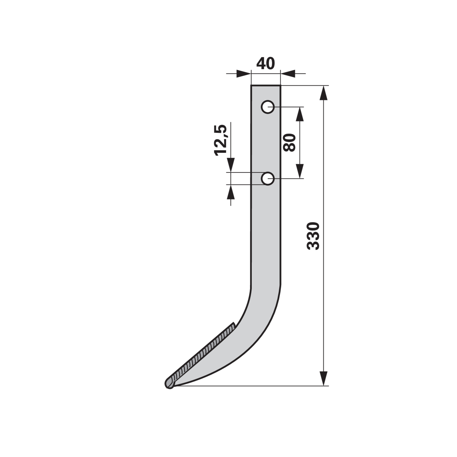 | Bezeichnung | Fräshaken mit Auftragsschweißung L = 330 |
