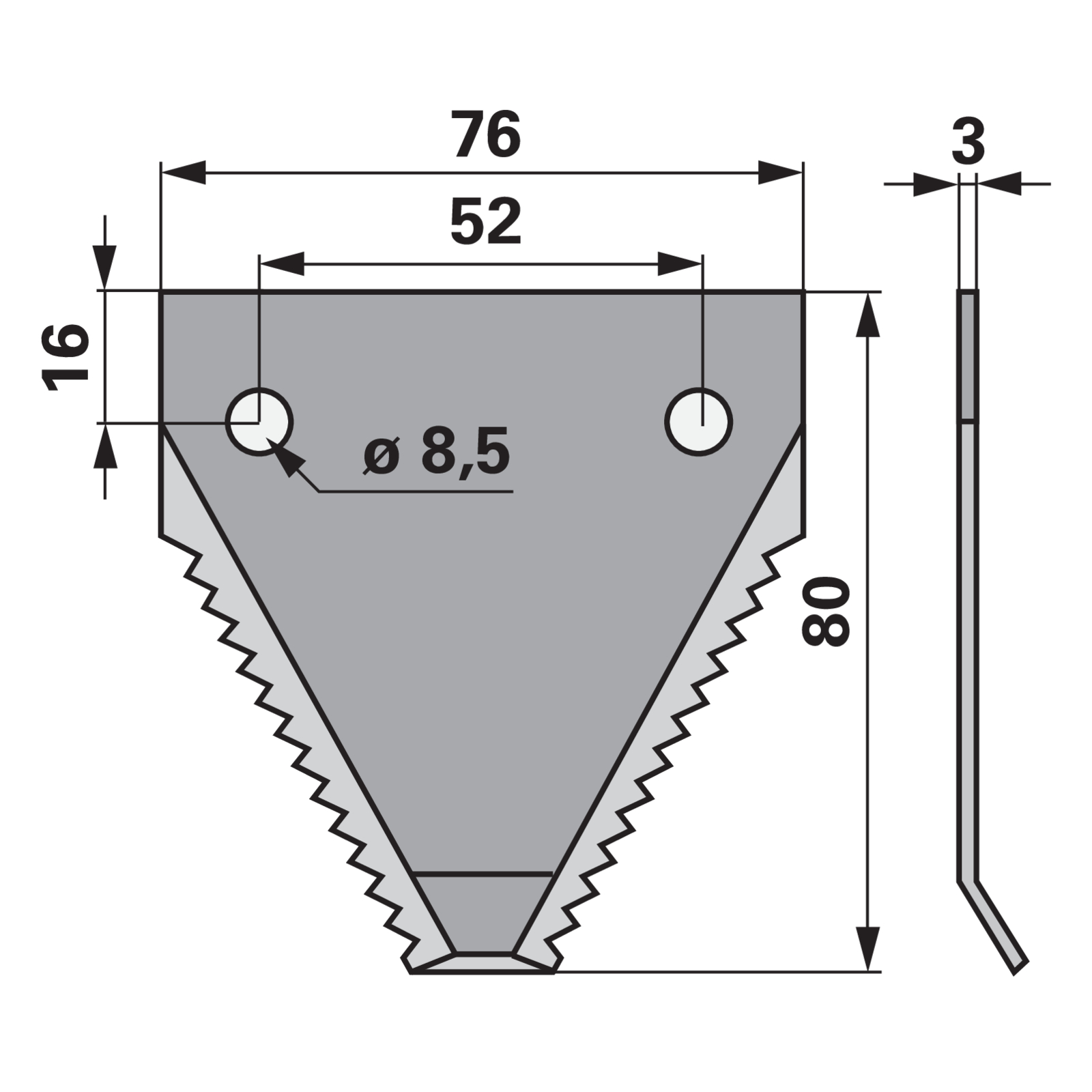 | Bezeichnung | Fräsmesser L 80 x B 76 x S 3 mm, gezahnt, abgewinkelt |