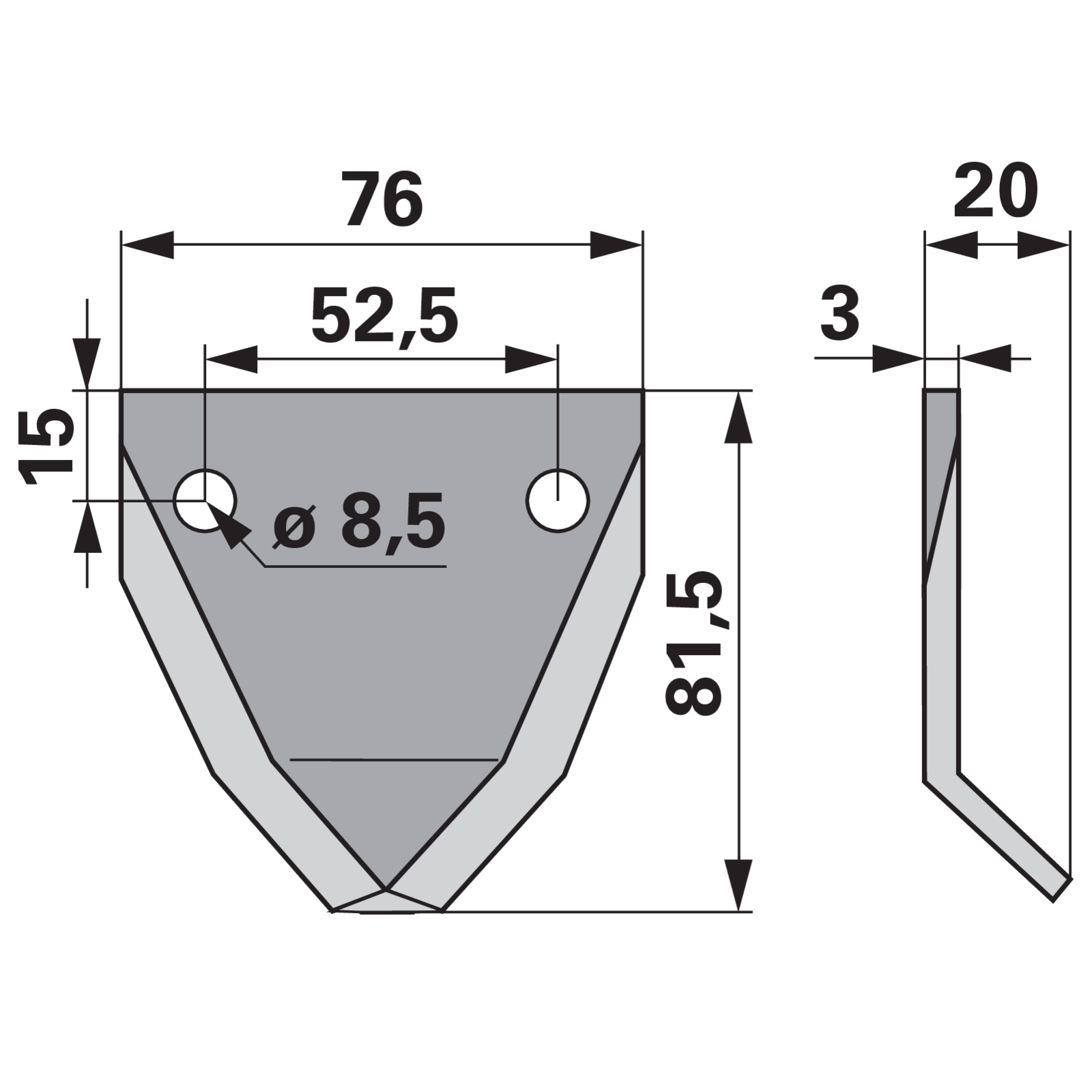 | Bezeichnung | Fräsmesser L 81,5 x B 76 x S 3 mm, glatt, abgewinkelt anstelle von Faresin 308428750 |