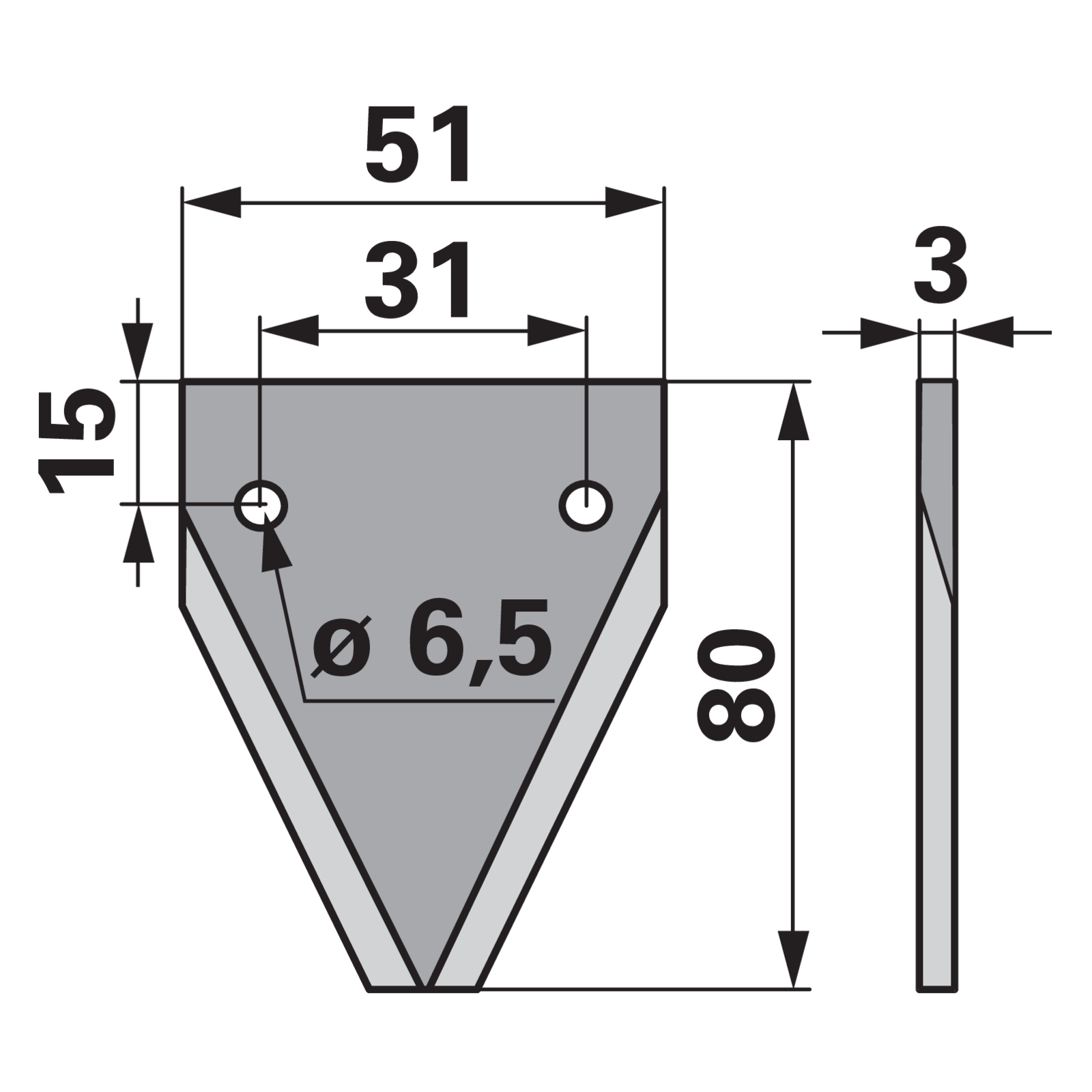 | Bezeichnung | Fräsmesser L 80 x B 51 x S 3 mm, glatt, gerade anstelle von Walker 16800008 |