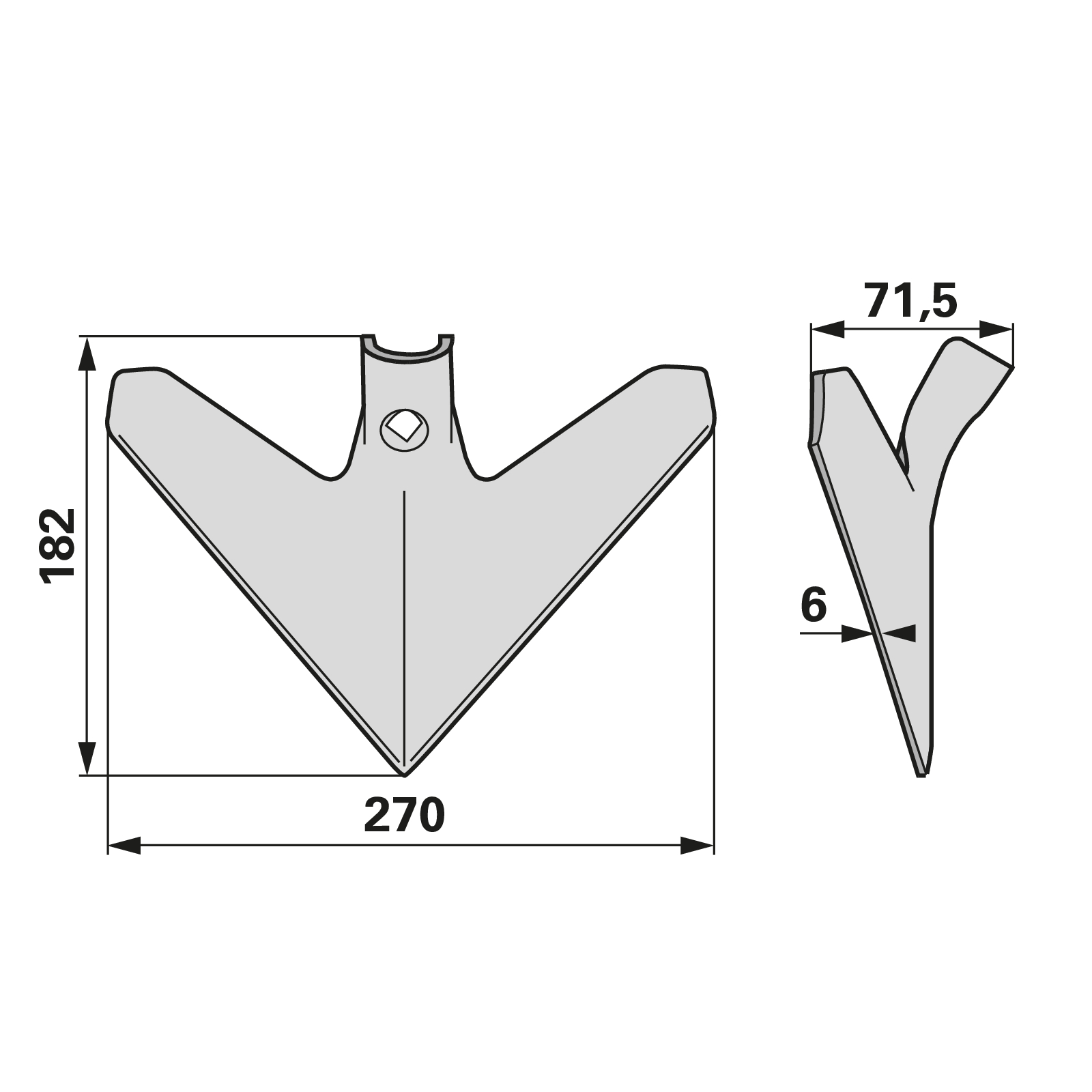 | Bezeichnung | Gänsefußschare 270 x 6 mm anstelle von Saturn 40410-03-057 |