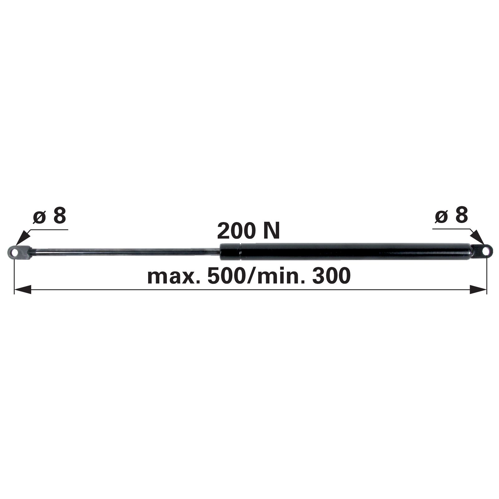 | Bezeichnung | Gasdruckfeder für Türe und Frontscheibe, 200 N, Länge 500 mm anstelle von Mauser 6-100.20.500 |