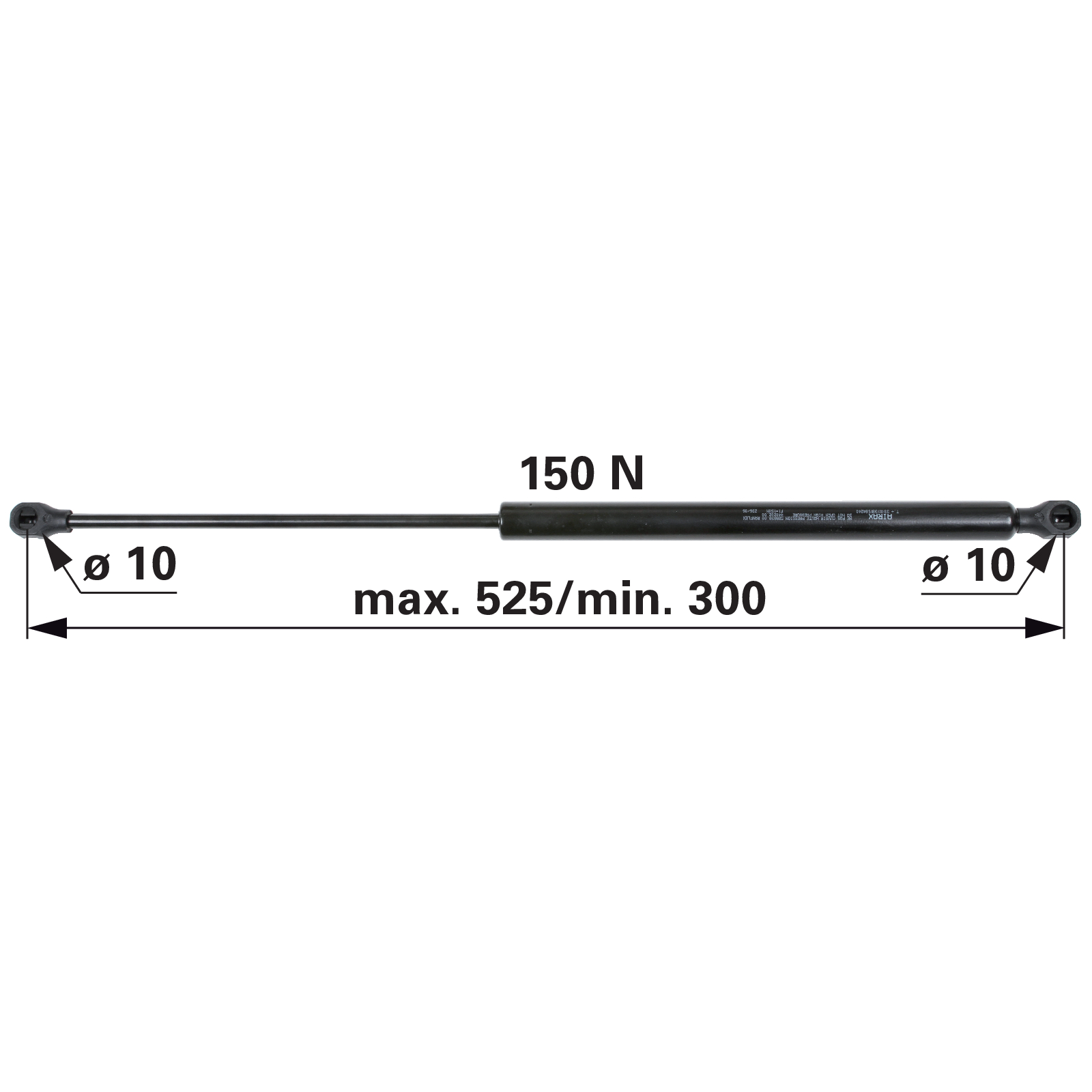 | Bezeichnung | Gasdruckfeder für Heckscheibe, 150 N, Länge 525 mm anstelle von Deutz-Fahr 0.012.2518.0 |