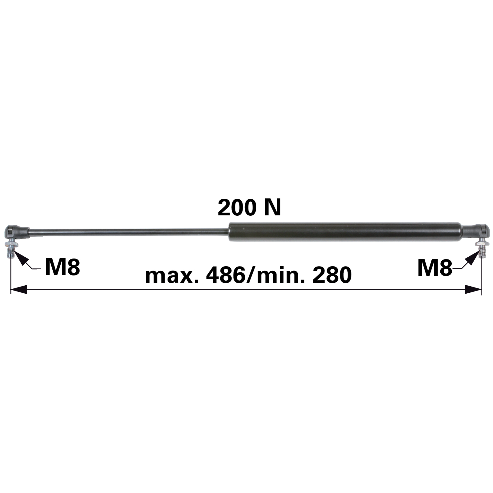 Gasdruckfeder für Heckscheibe, 200 N, Länge 486 Mm Anstelle Von John Deere Al71412