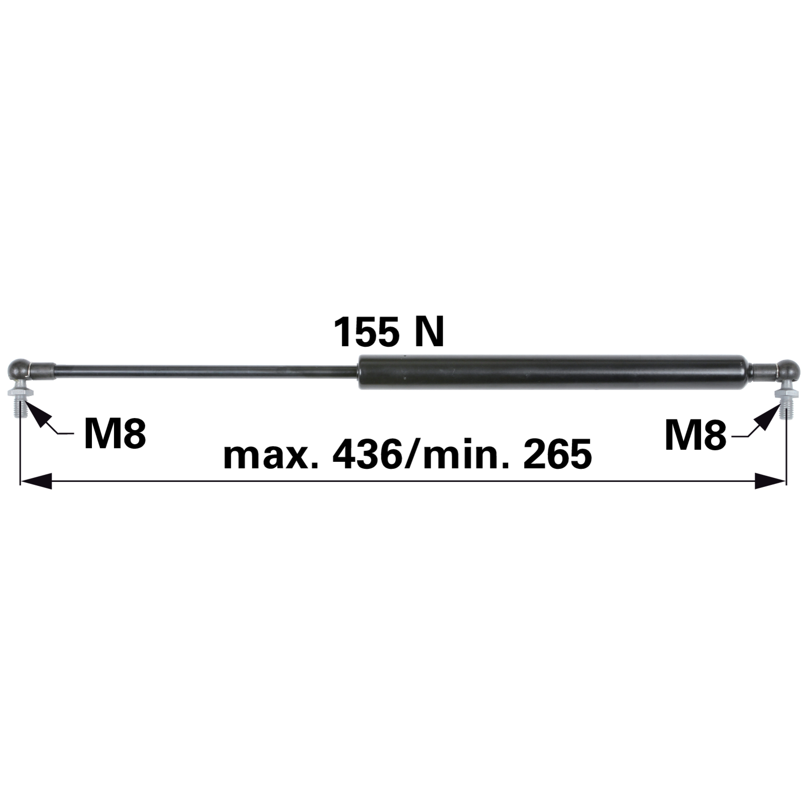 | Bezeichnung | Gasdruckfeder für Türe, 155 N, Länge 436 mm anstelle von John Deere RE58715 |