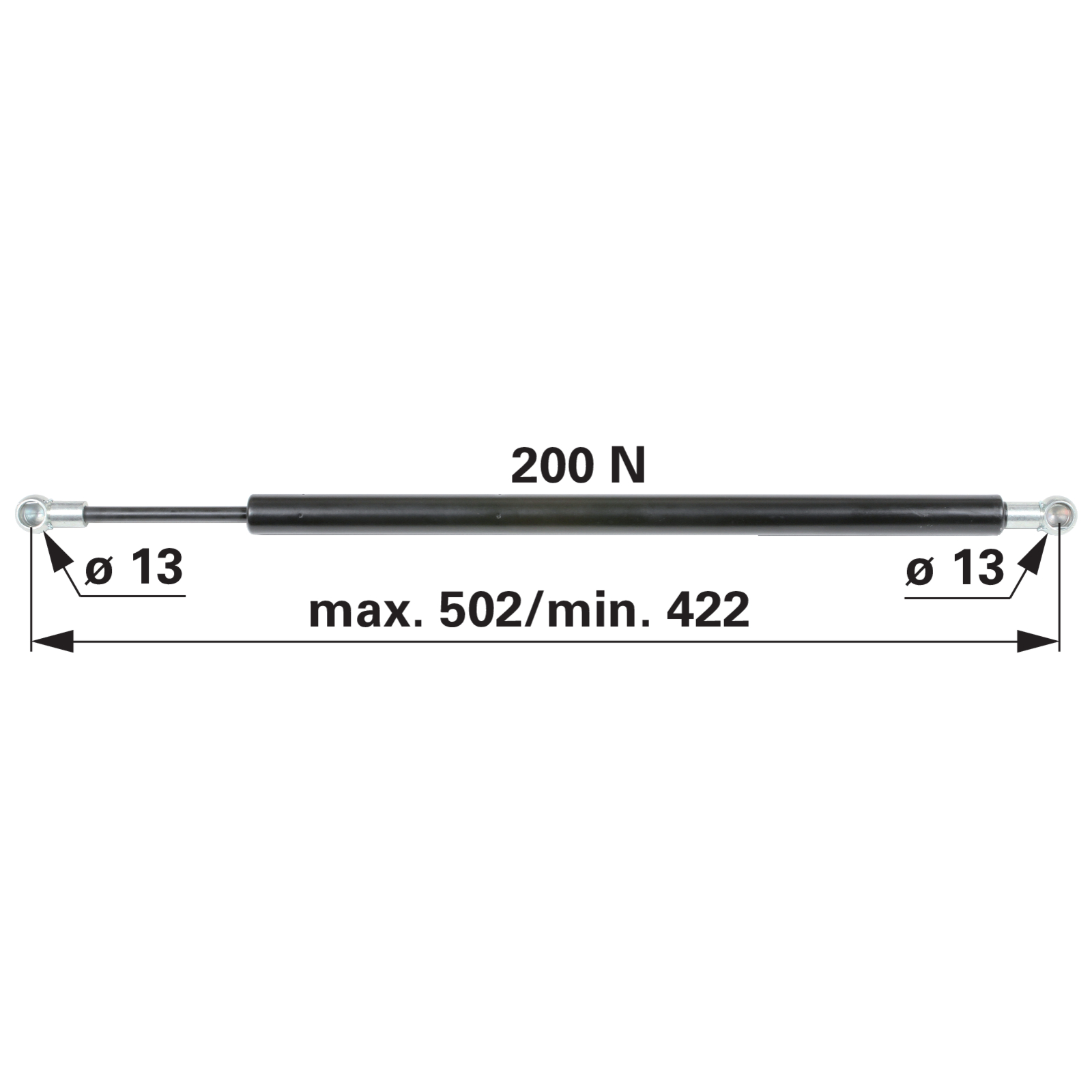 | Bezeichnung | Gasdruckfeder für Türe, 200 N, Länge 502 mm anstelle von Deutz-Fahr 04402639 |