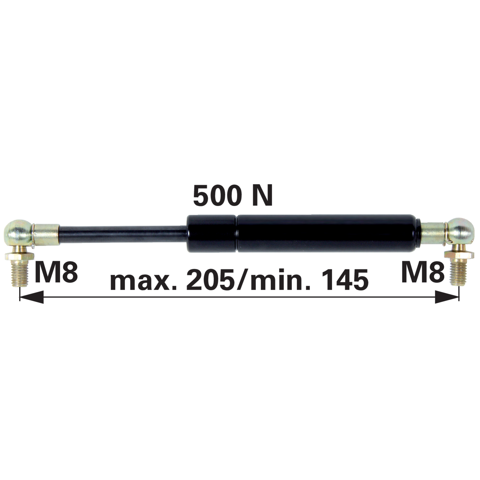 | Bezeichnung | Gasdruckfeder für Türe, 500 N, Länge 205 mm anstelle von Steyr 1-99-976-061 |