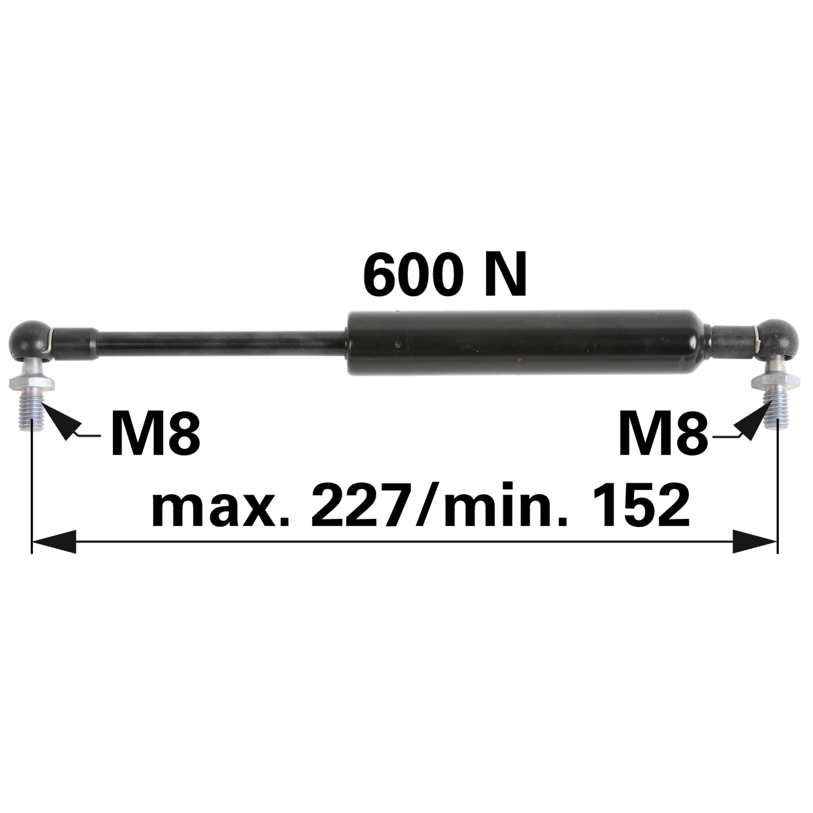 | Bezeichnung | Gasdruckfeder für Türe, 600 N, Länge 227 mm anstelle von Massey Ferguson 3902121M4 |