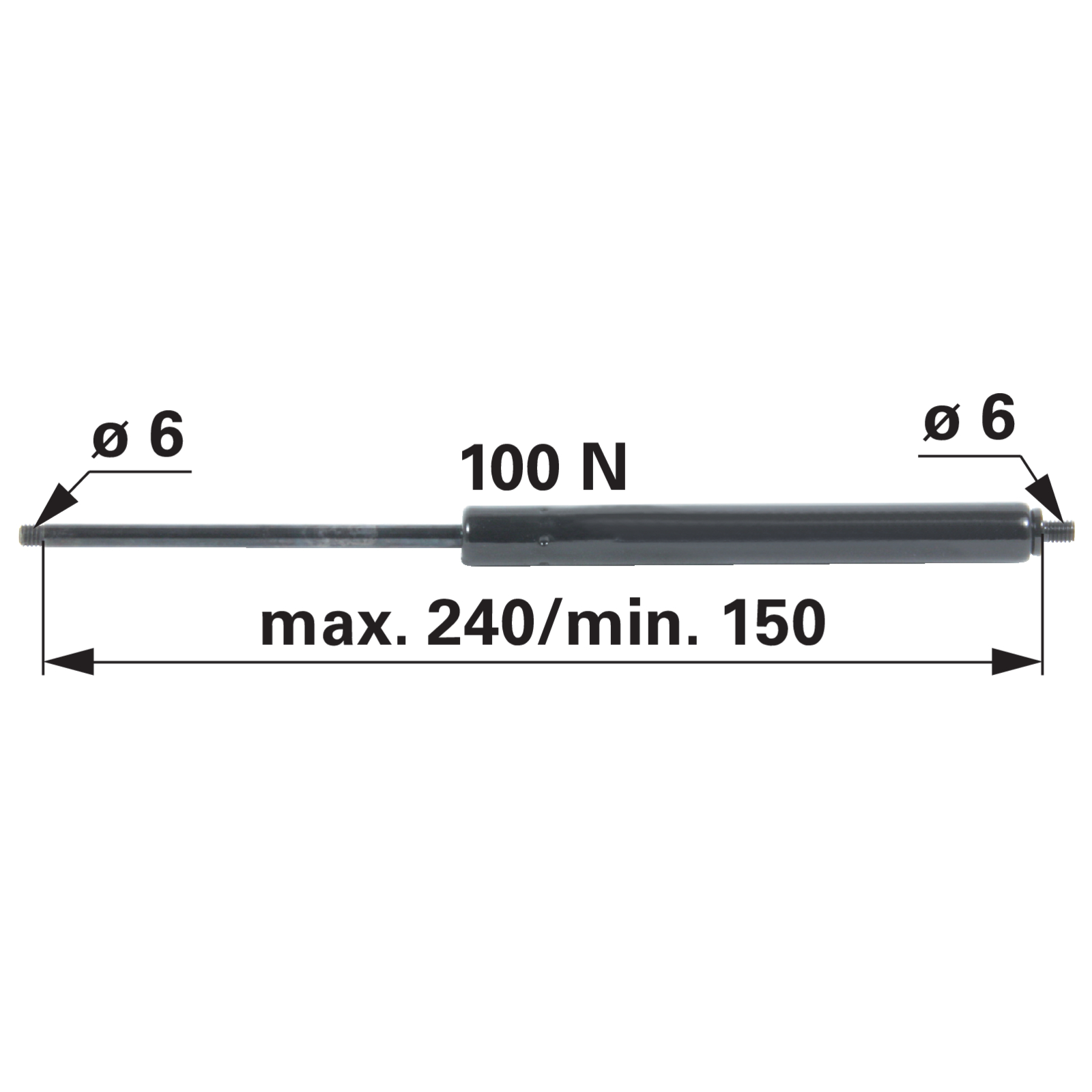 | Bezeichnung | Gasdruckfeder ohne Anschlüsse, 100 N, Länge 240 mm |