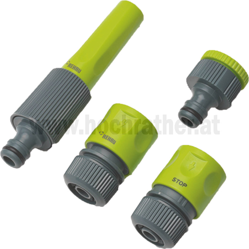 | Contents | Consisting of tap adaptor 3/4" with reducer to 1/2", quick hose connector, water stop and adjustable nozzle. |