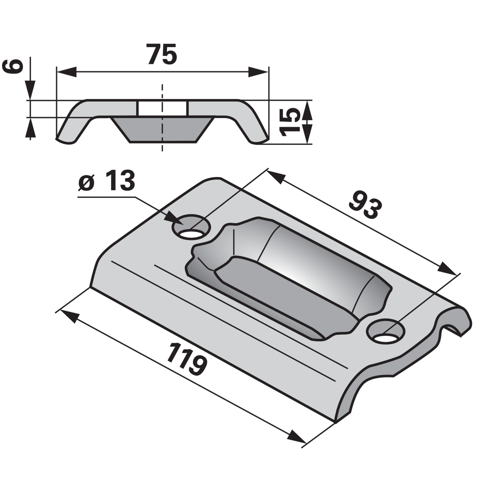 | Bezeichnung | Halteplatte 119 x 75 mm, Lochabstand 93 mm |