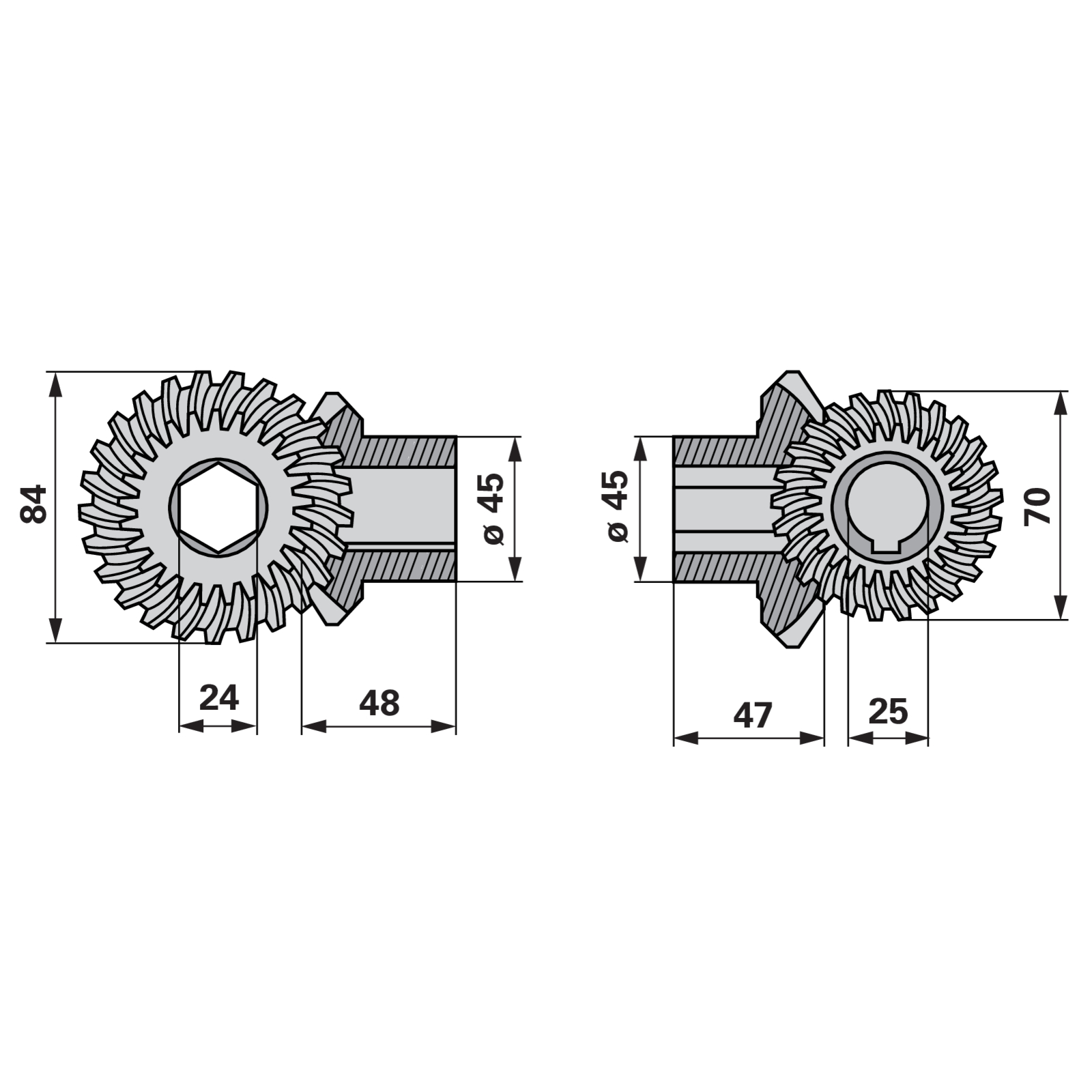 | Bezeichnung | Kegelradsatz 25/20 Zähne anstelle von Fella 140519 |