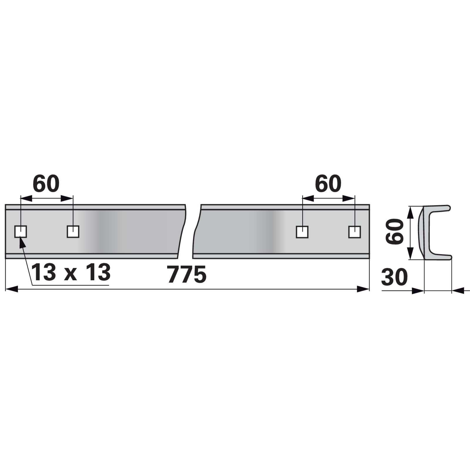 Kratzbodenleiste U-Profil, 60 X 30 Mm, Gelocht, L 775 Mm Anstelle Von Strautmann 151