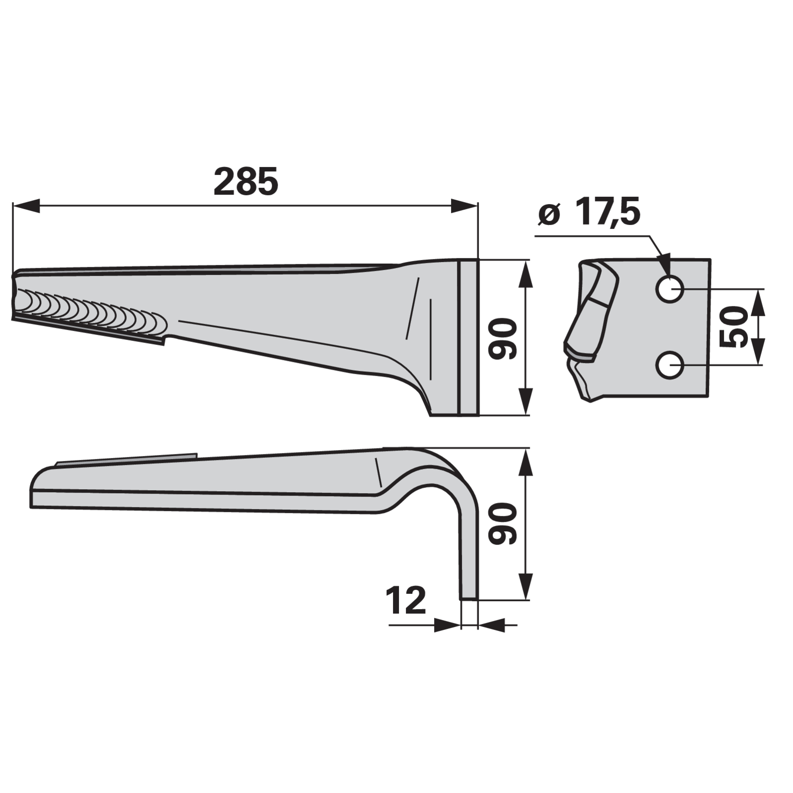 | Bezeichnung | Kreiseleggenzinke rechts, Hartmetall anstelle von Maschio 27100210H |