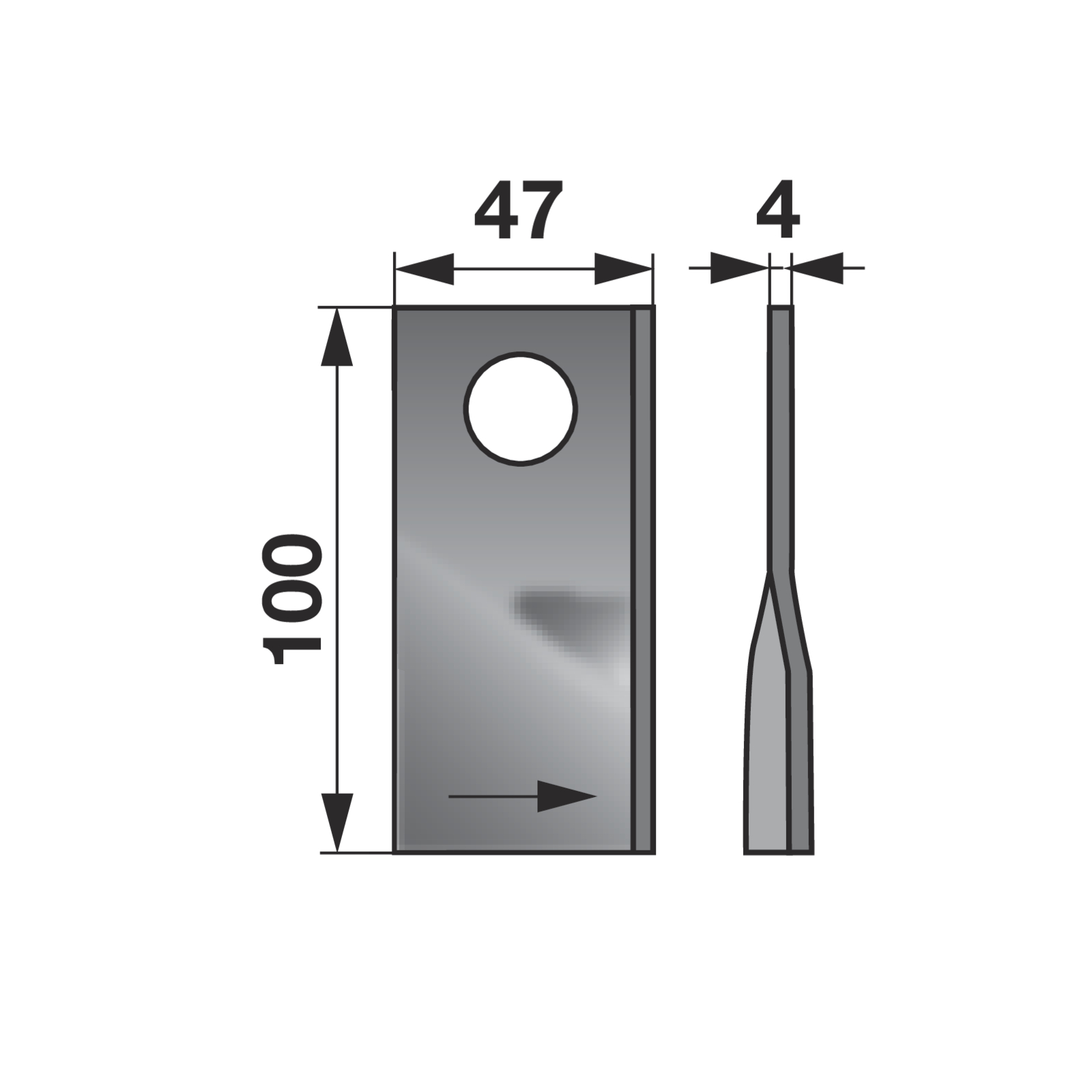 | Bezeichnung | Kreiselmäherklinge links, L 100 x B 47 x S 4 mm, d 18,5 mm Lely 4.1220.1995.0 |