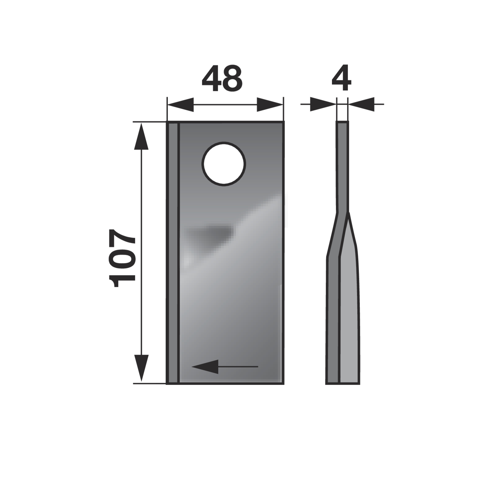 | Bezeichnung | Kreiselmäherklinge rechts, L 107 x B 48 x S 4 mm, d 18,5 mm, 20 Stück Deutz-Fahr VF16503364 |