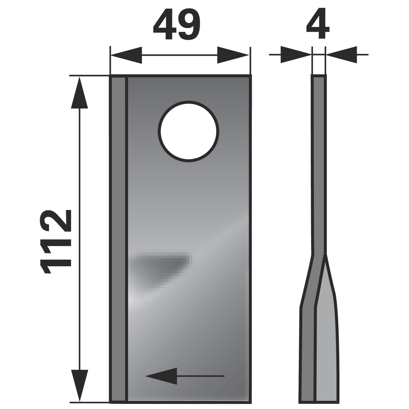 | Bezeichnung | Kreiselmäherklinge rechts, L 112 x B 49 x S 4 mm, d 21 mm, 25 Stück Pöttinger 434.97.099.9 |