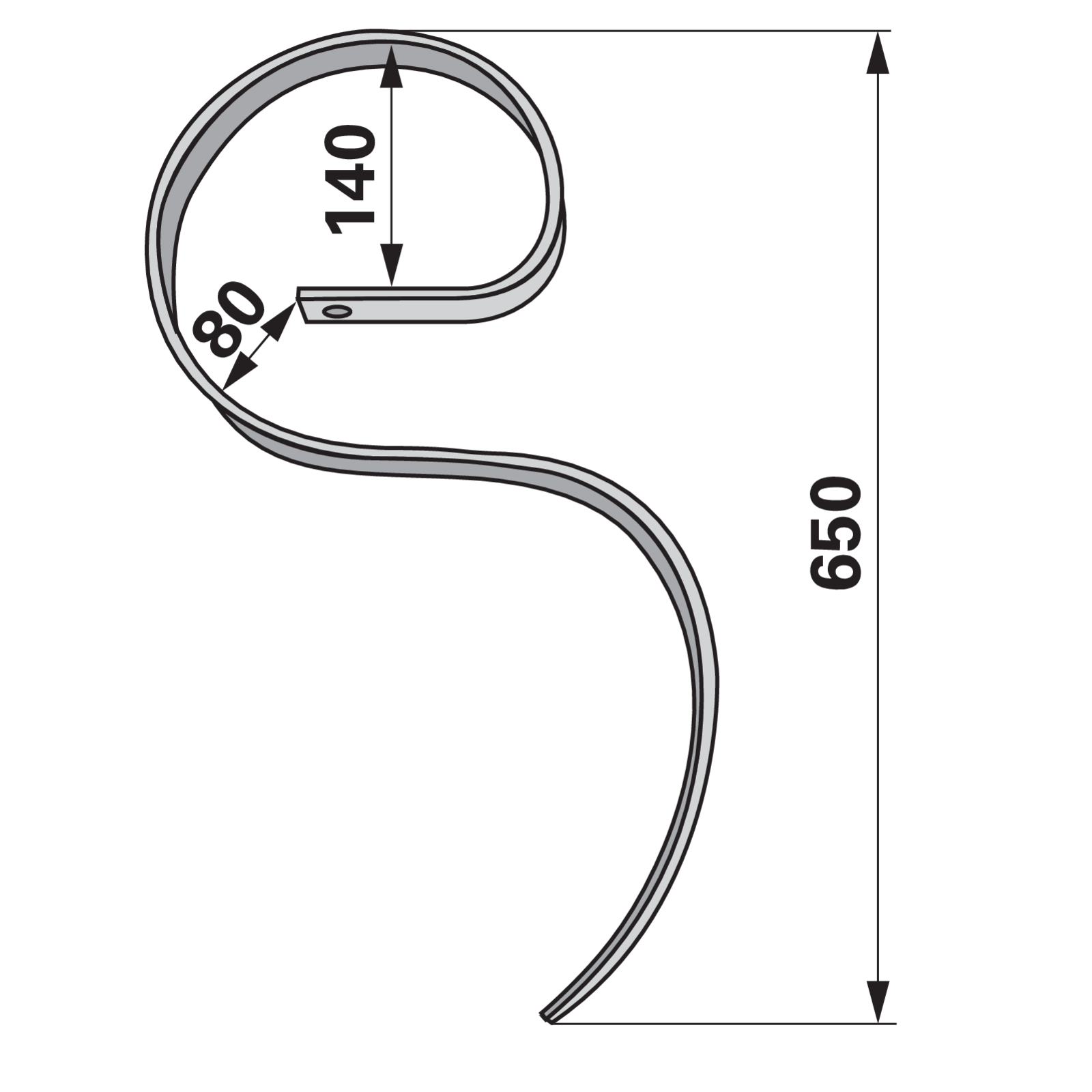 Kultivatorzinke Gebogen Ohne Schare, 45 X 12 X 650 Mm, Einbauhöhe 520 Mm
