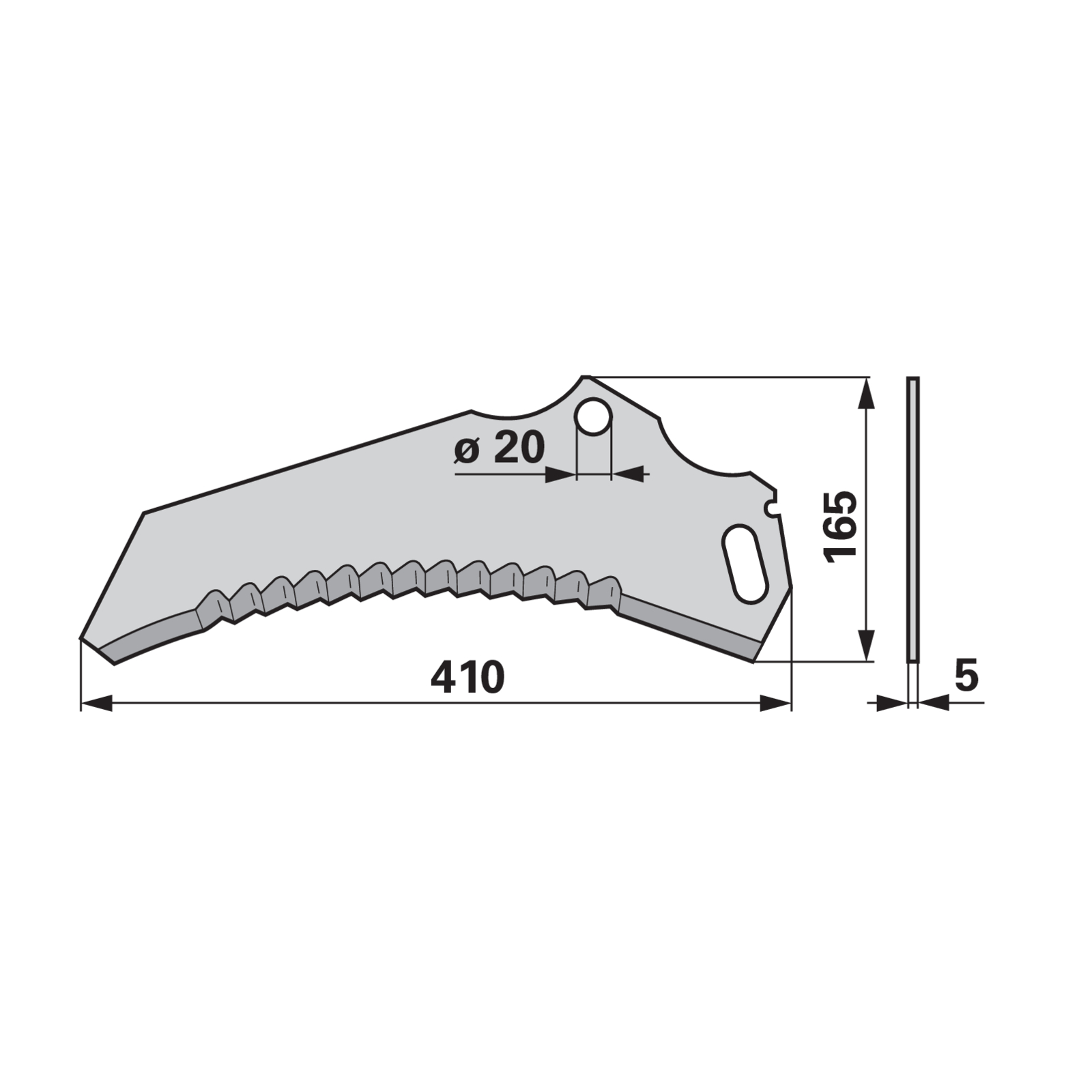| Bezeichnung | Ladewagenmesser L 410 mm, S 5 mm anstelle von Pöttinger 434.072 |