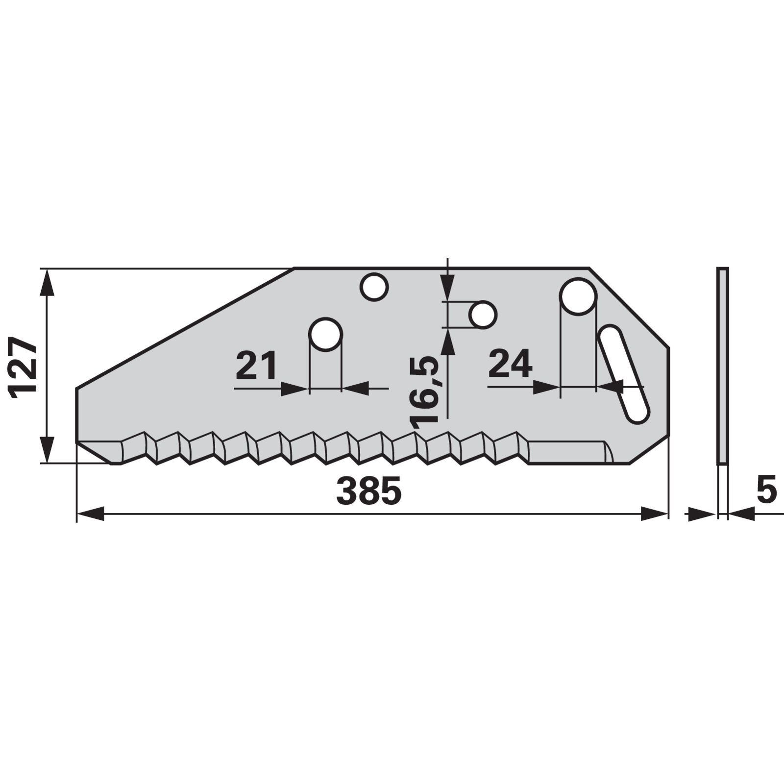 | Bezeichnung | Ladewagenmesser L 385 mm, S 5 mm anstelle von Pöttinger 434.017 |
