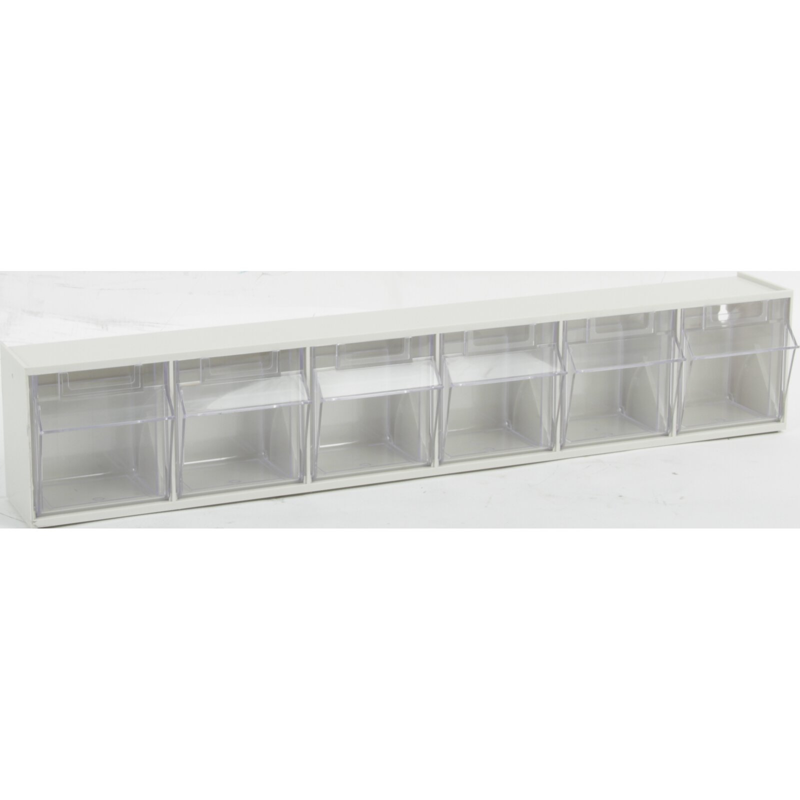 Lagersystem Practibox Größe 6, 600 X 98 X 112 Mm, Farbe Grau mit 6 Kippbehältern