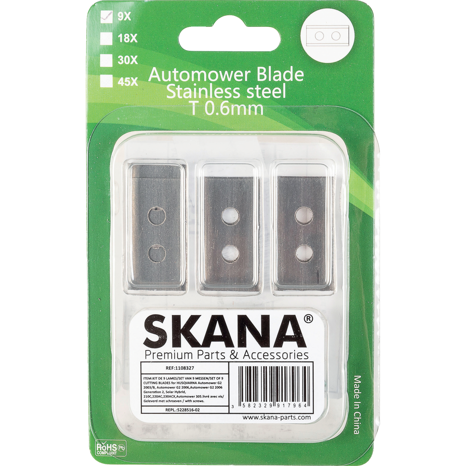 | Bezeichnung | Messerklinge 9-teilig im Blister anstelle von Husqvarna 522851602 |