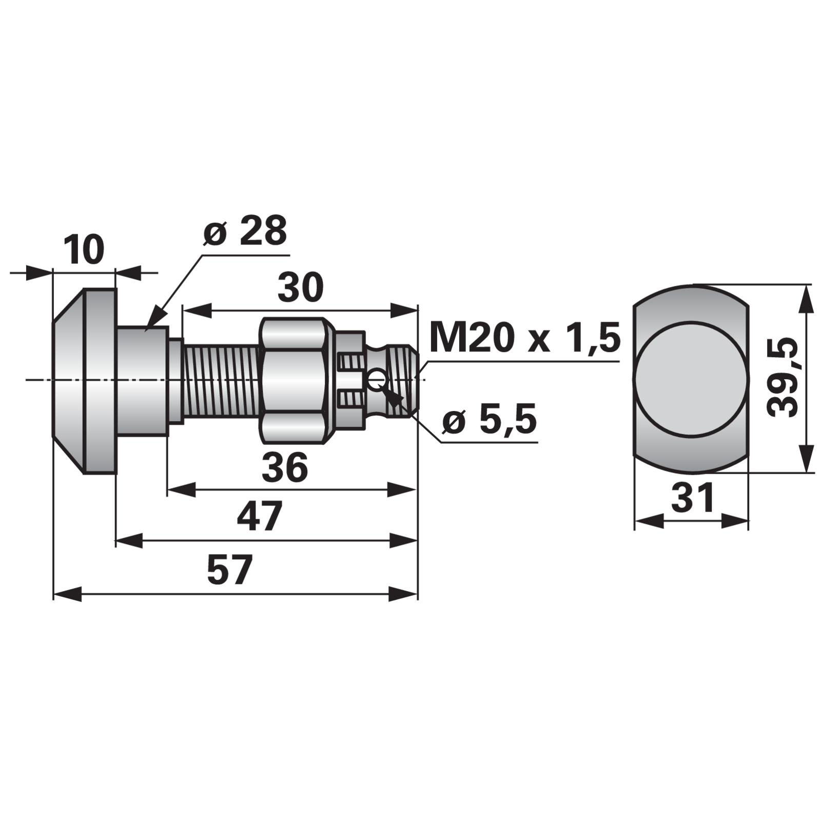 | Außengewinde (G) | M20x1,5 |