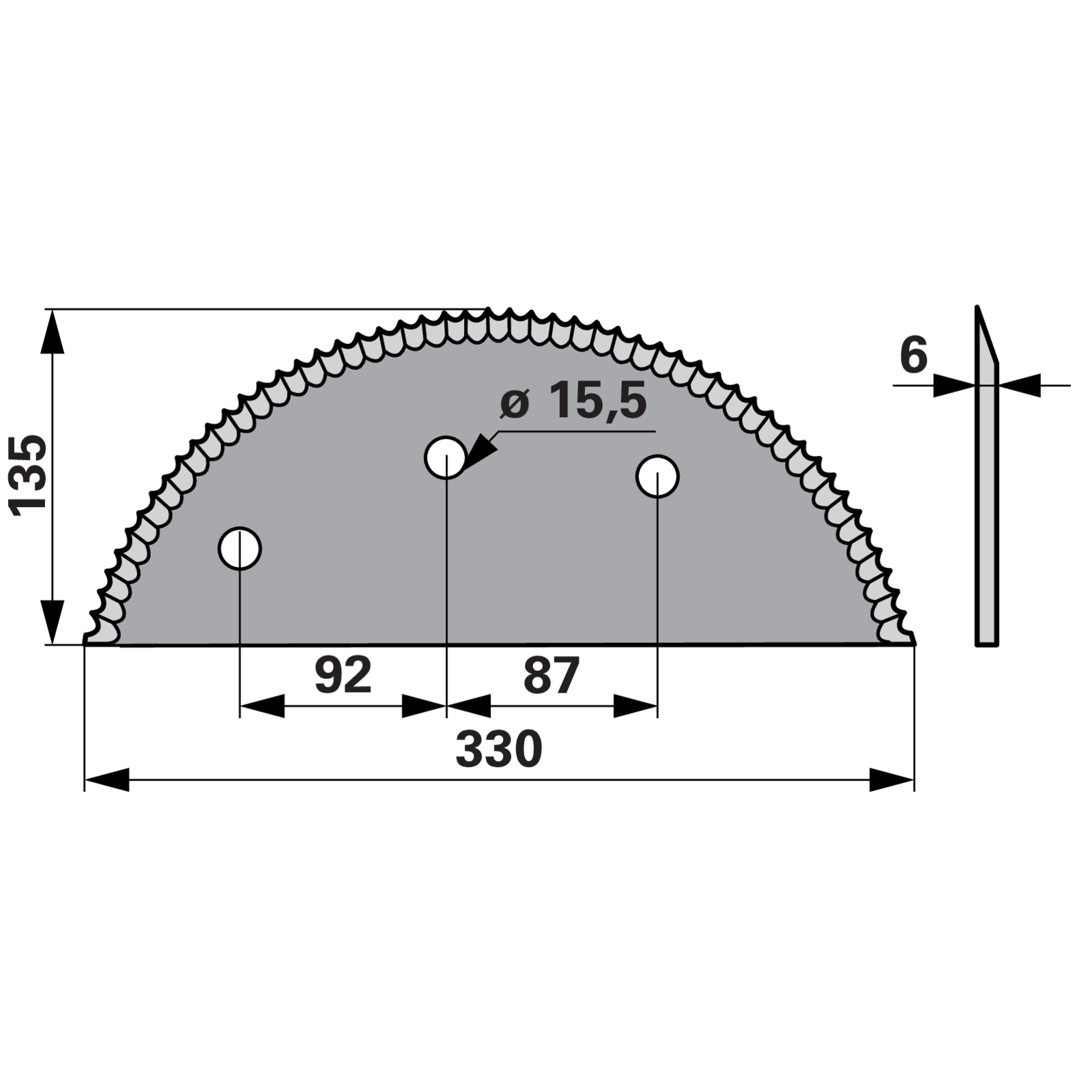 | Bezeichnung | Mischwagenmesser L 330 x B 135 x S 6 mm passend zu Unimix, Ungarn-Mezögep |