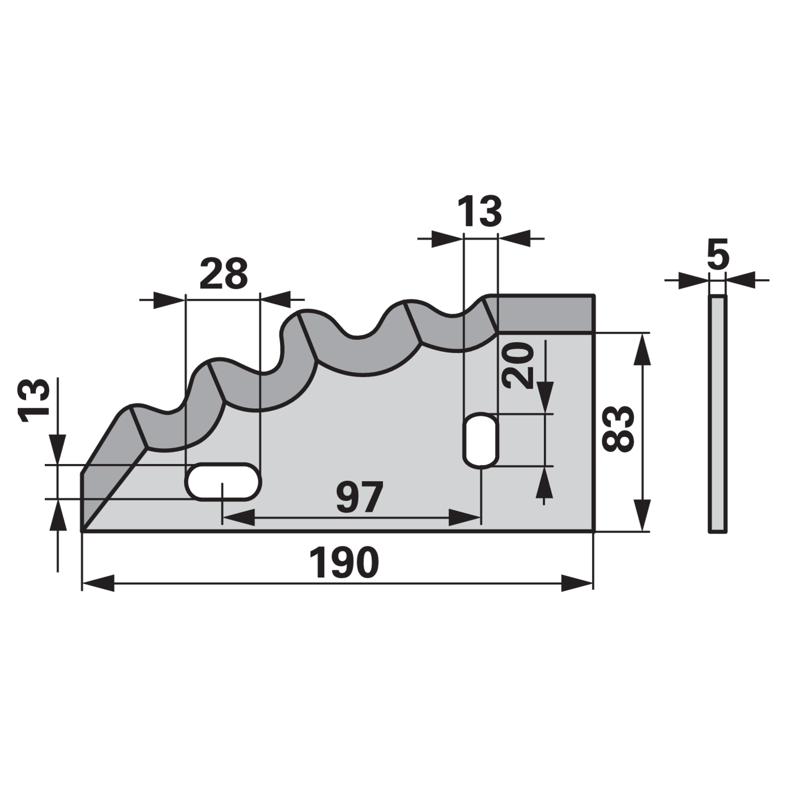 | Bezeichnung | Mischwagenmesser L 190 x B 83 x S 5 mm, rechts anstelle von Himel 3000461 |
