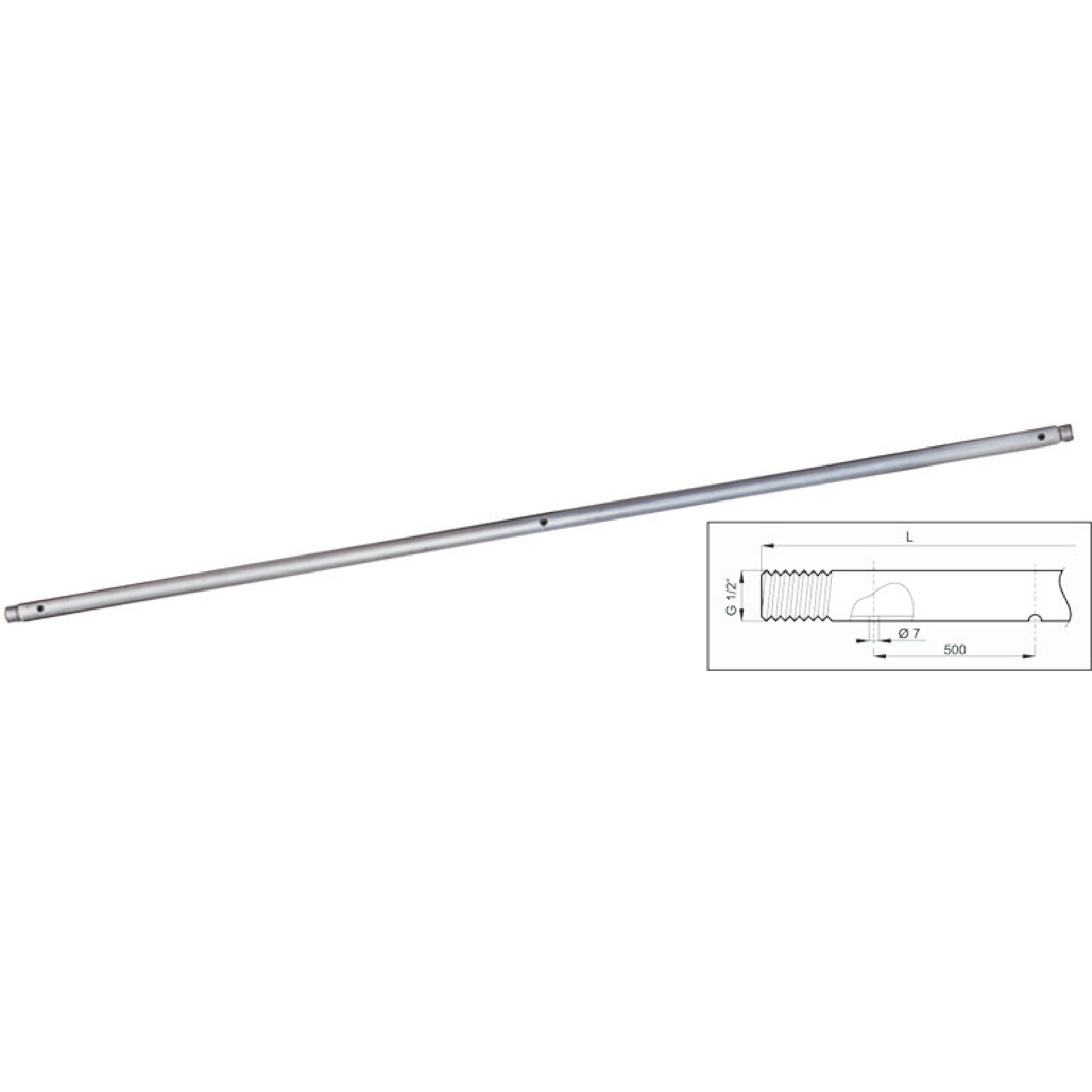 | Bezeichnung | Nirosterrohr vorgebohrt, 1/2 Zoll, 2070 mm |