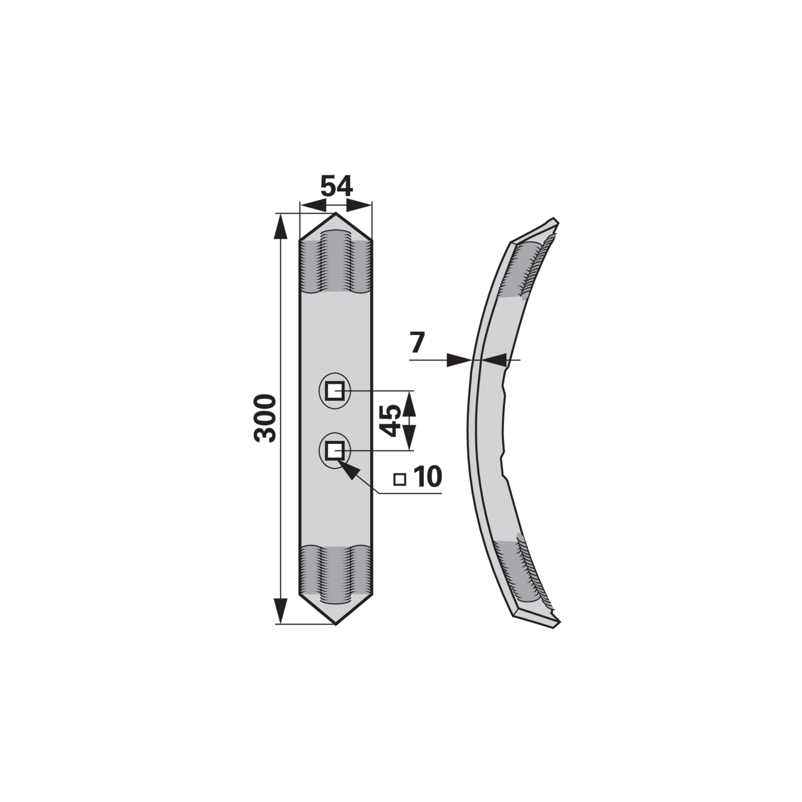 | Bezeichnung | Normalschare beschichtet, 54 x 7 x 300 mm, Lochabstand 45 mm |