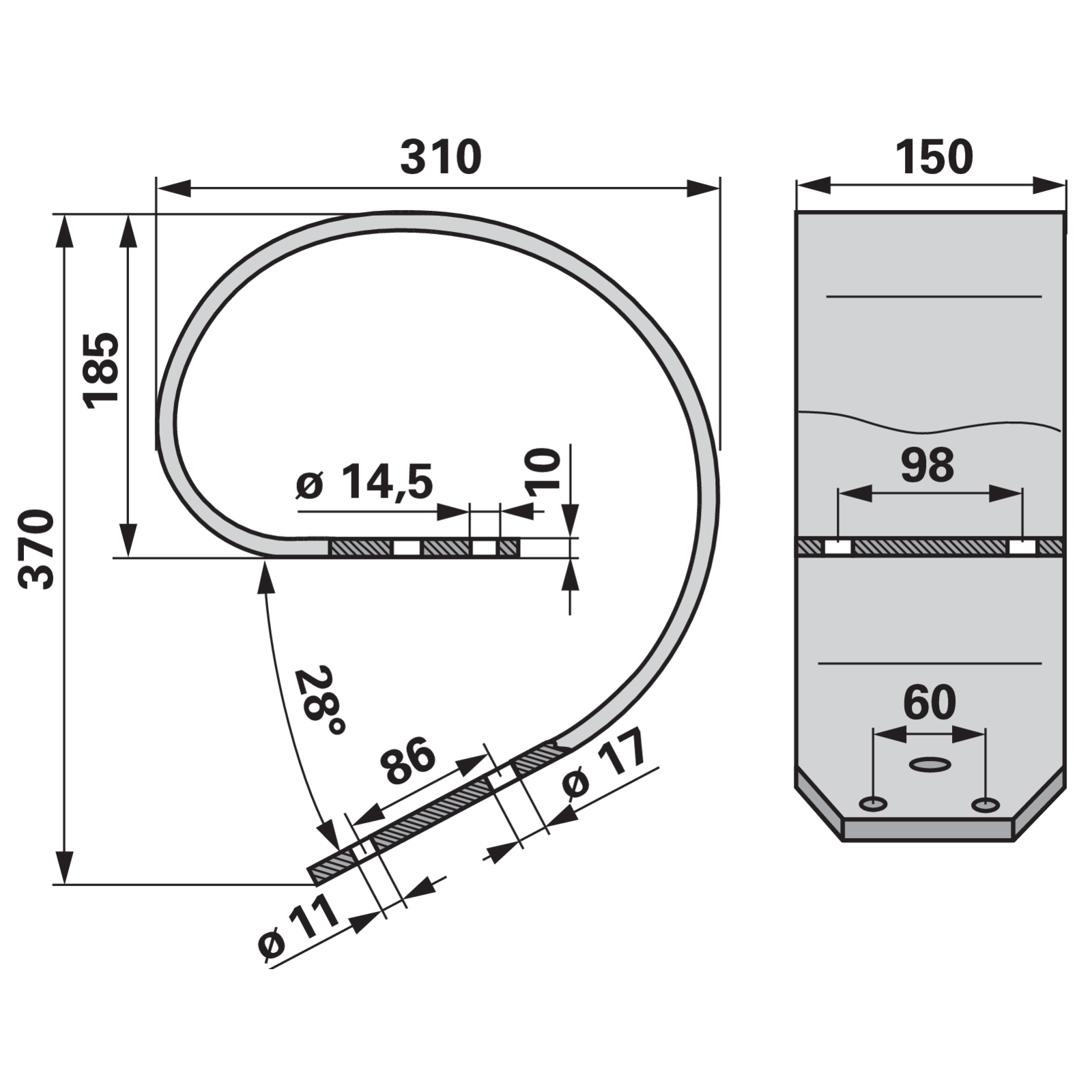 | Lochdurchmesser 2 (d2) | 11 mm |