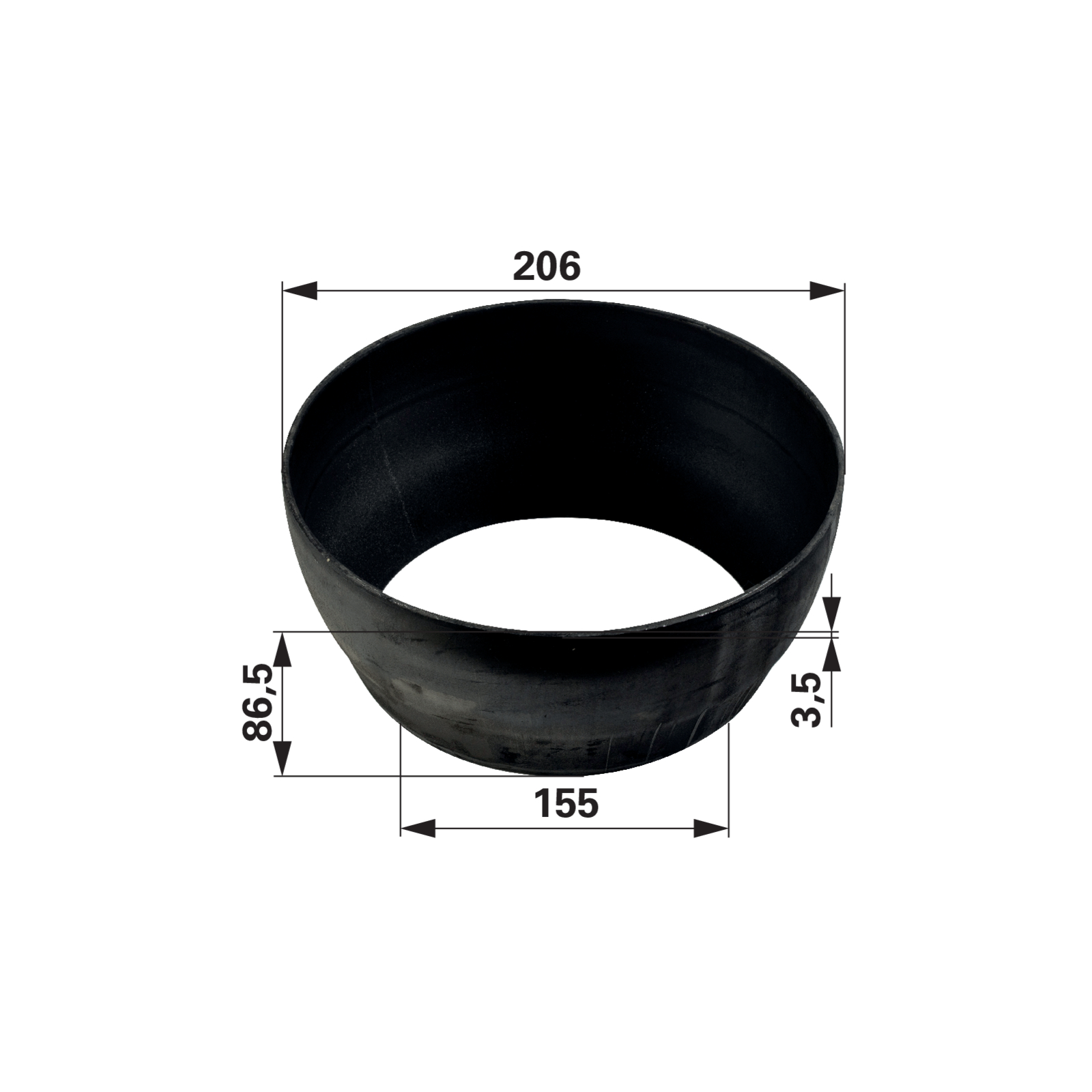 | Bezeichnung | Reduzierstück AD 206 x AD 155 x S 2 mm, roh-Schwarz |