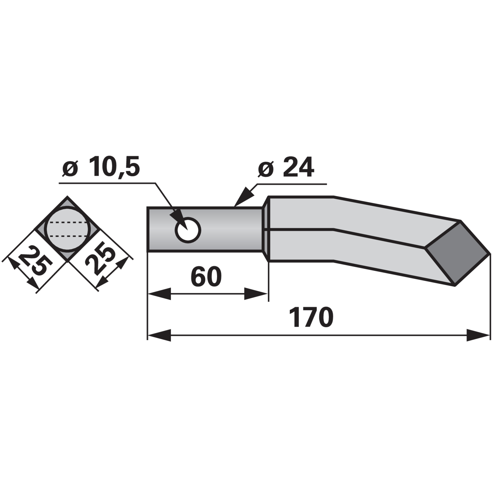 | Bezeichnung | Rotorzinke links, 25 x 25 mm, Länge 170 mm |