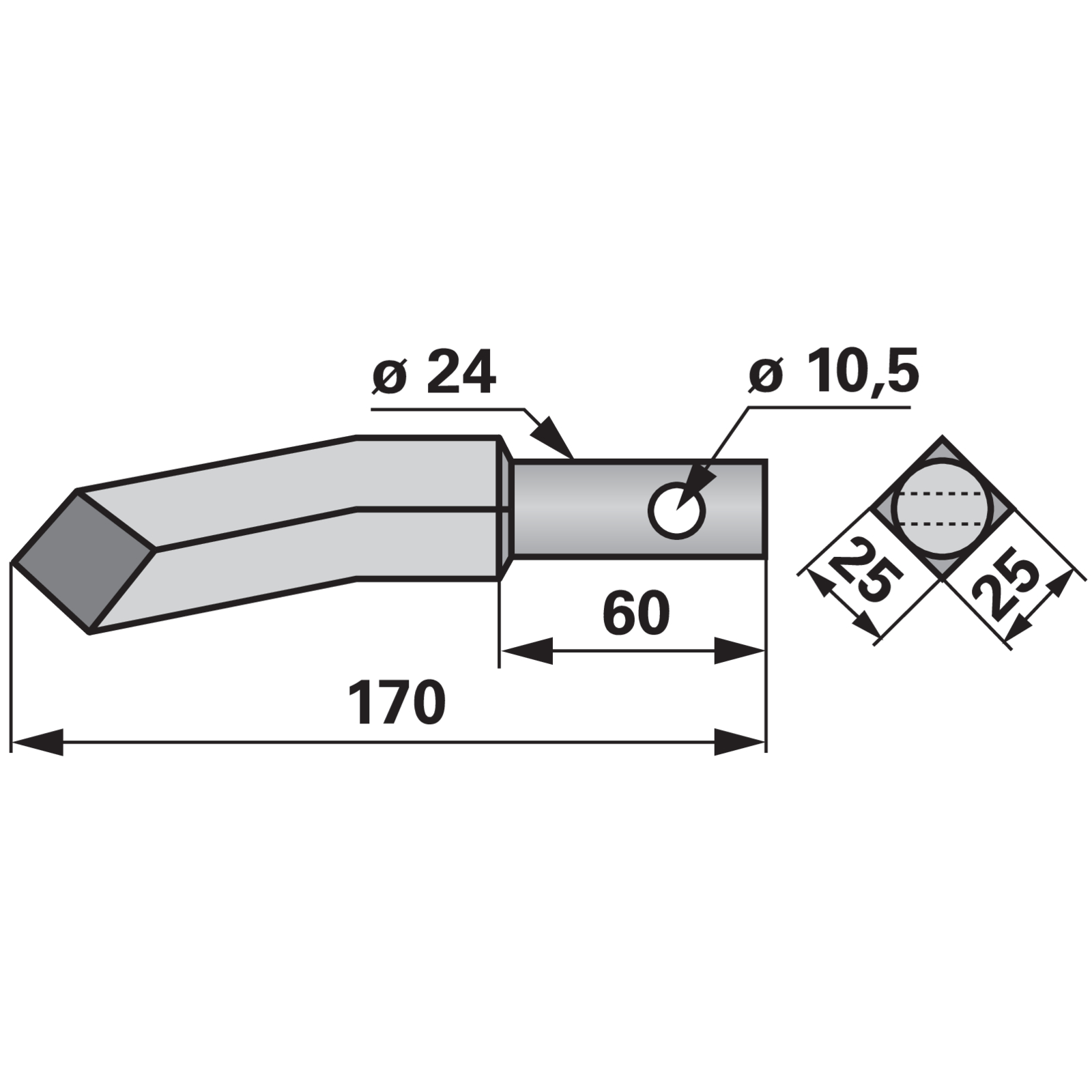 | Bezeichnung | Rotorzinke rechts, 25 x 25 mm, Länge 170 mm |