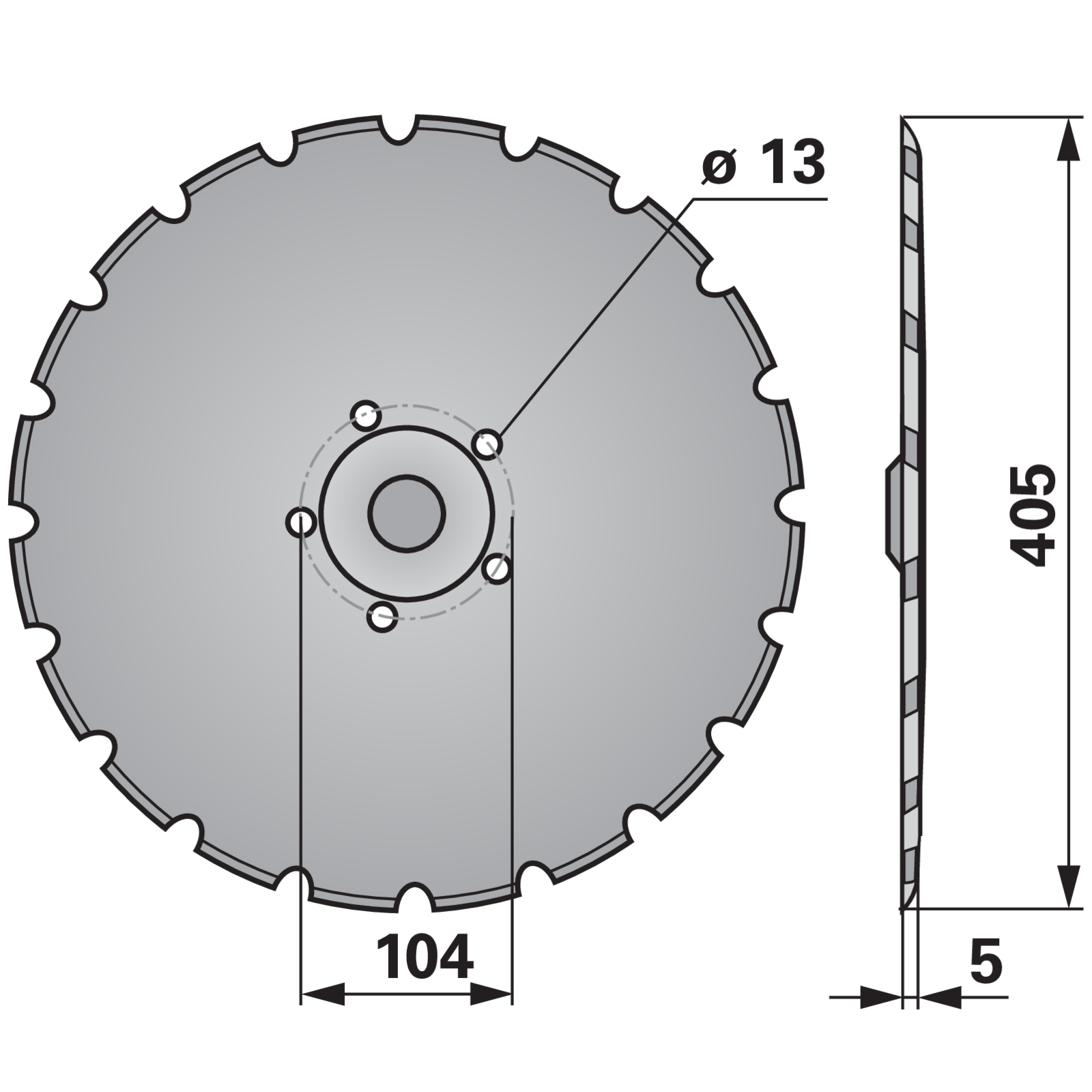 | Lochkreis (LK) | 104 mm |